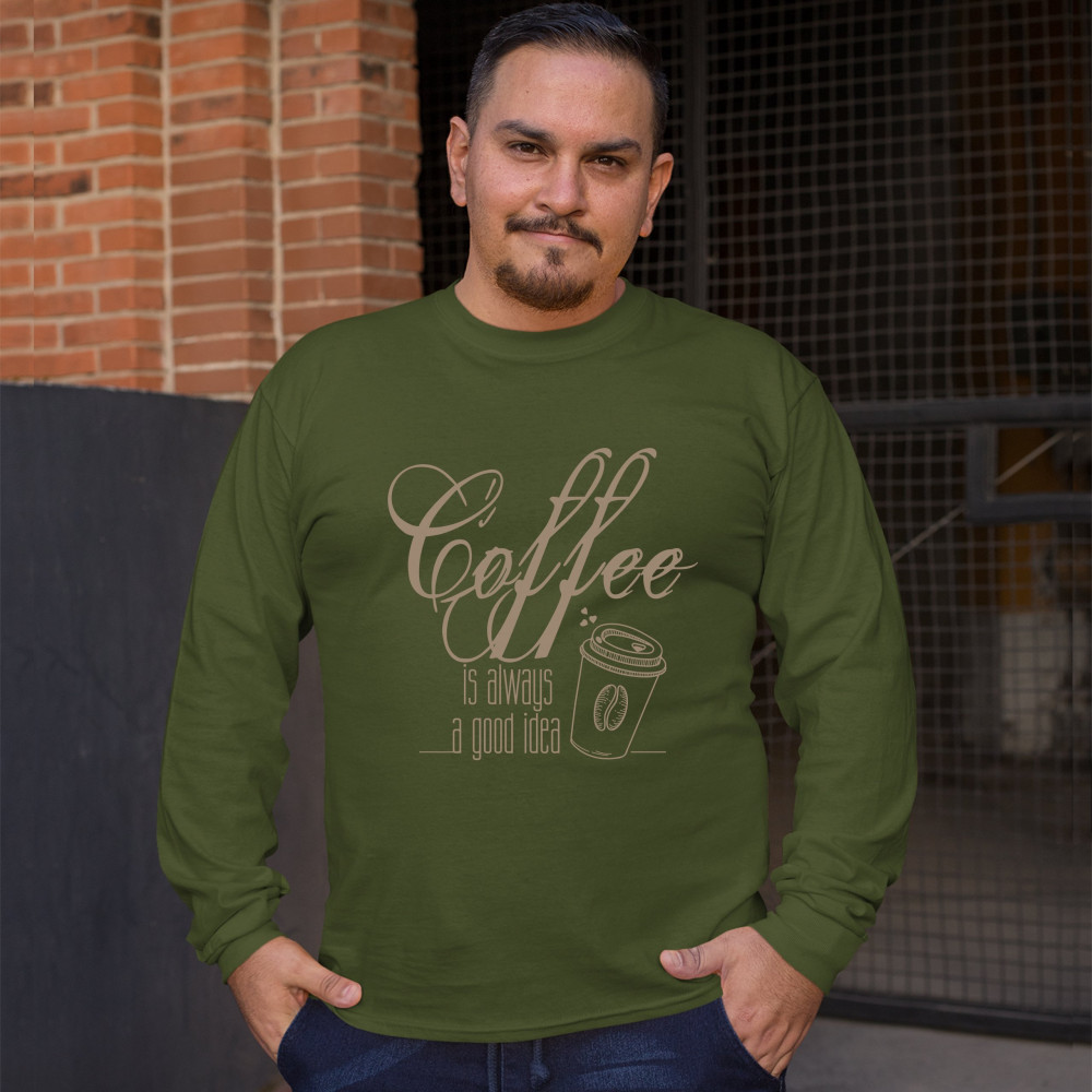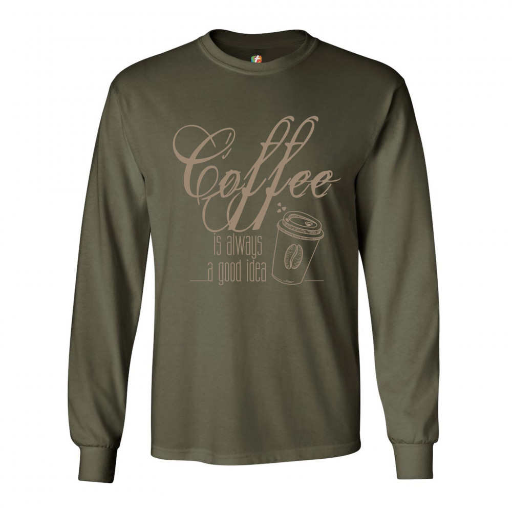 COFFEE IS ALWAYS A GOOD IDEA long sleeve t-shirt caffeine addict coffee lover military green