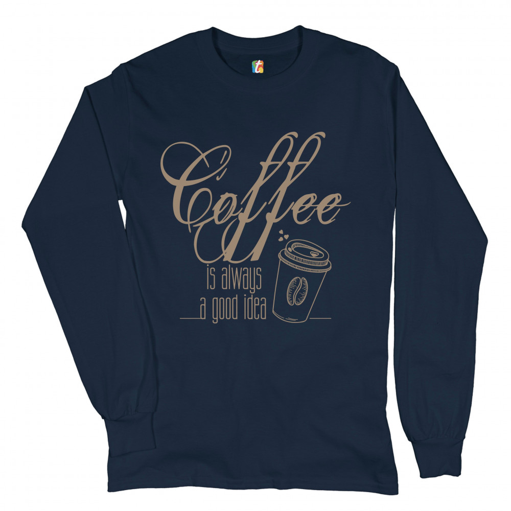 COFFEE IS ALWAYS A GOOD IDEA long sleeve t-shirt caffeine addict coffee lover navy blue