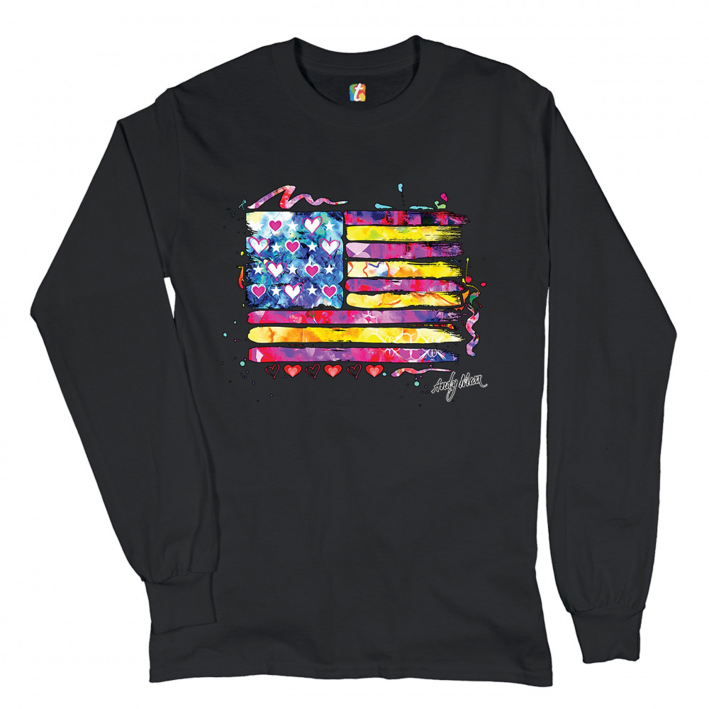COLORFUL AMERICAN FLAG long sleeve t-shirt patriotic 4th of july independence black