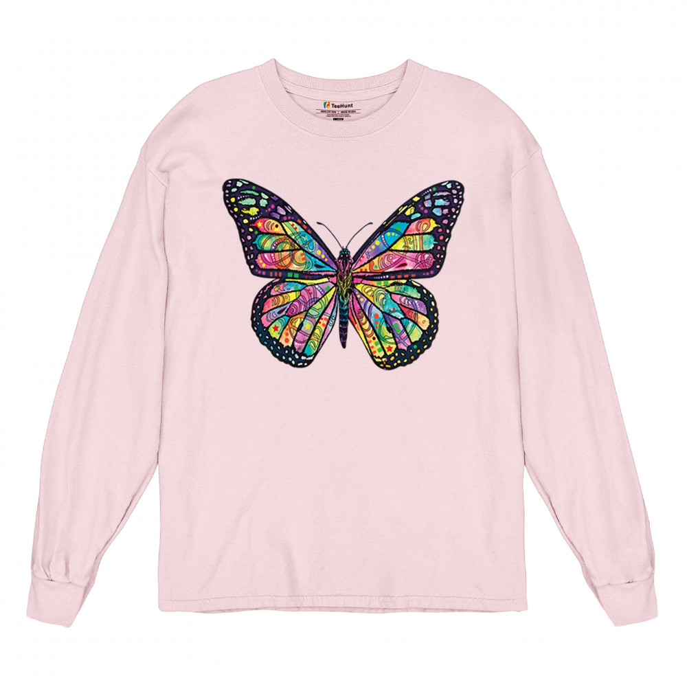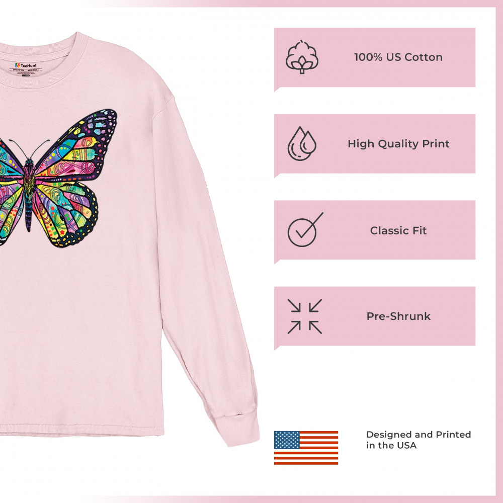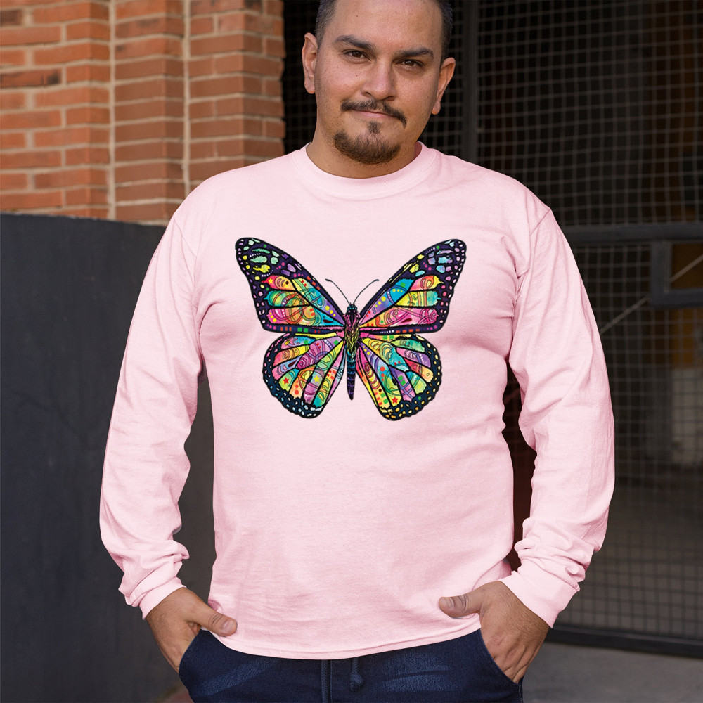 COLORFUL NEON BUTTERFLY long sleeve t-shirt dean russo beautiful nature pink