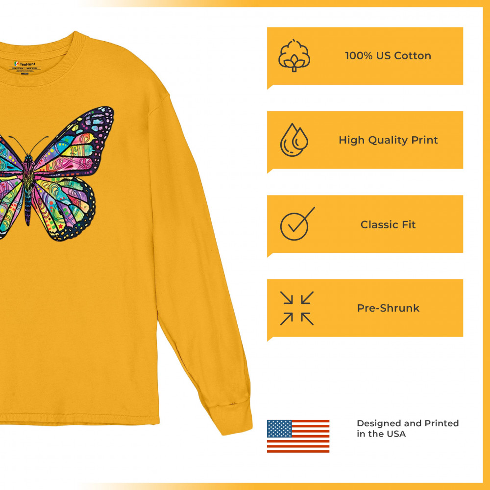 COLORFUL NEON BUTTERFLY long sleeve t-shirt dean russo beautiful nature yellow