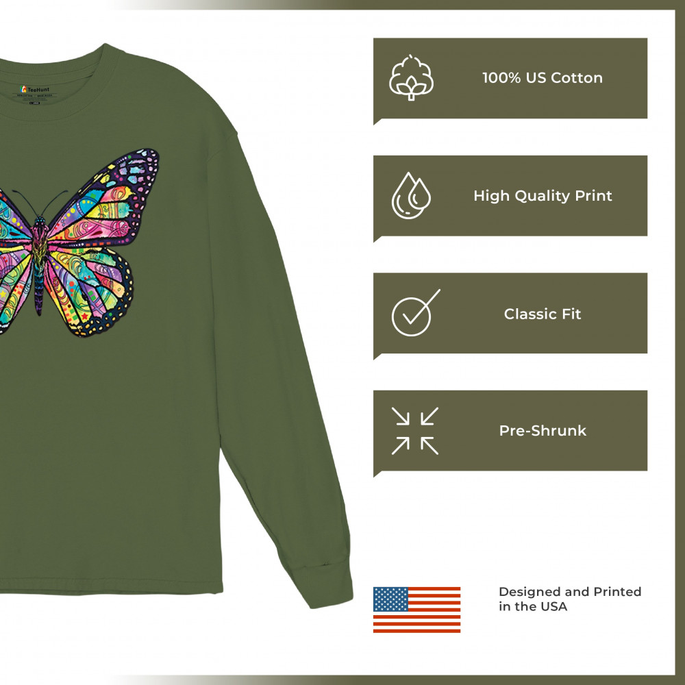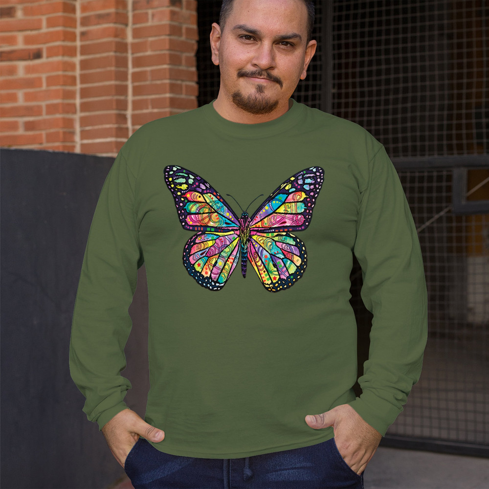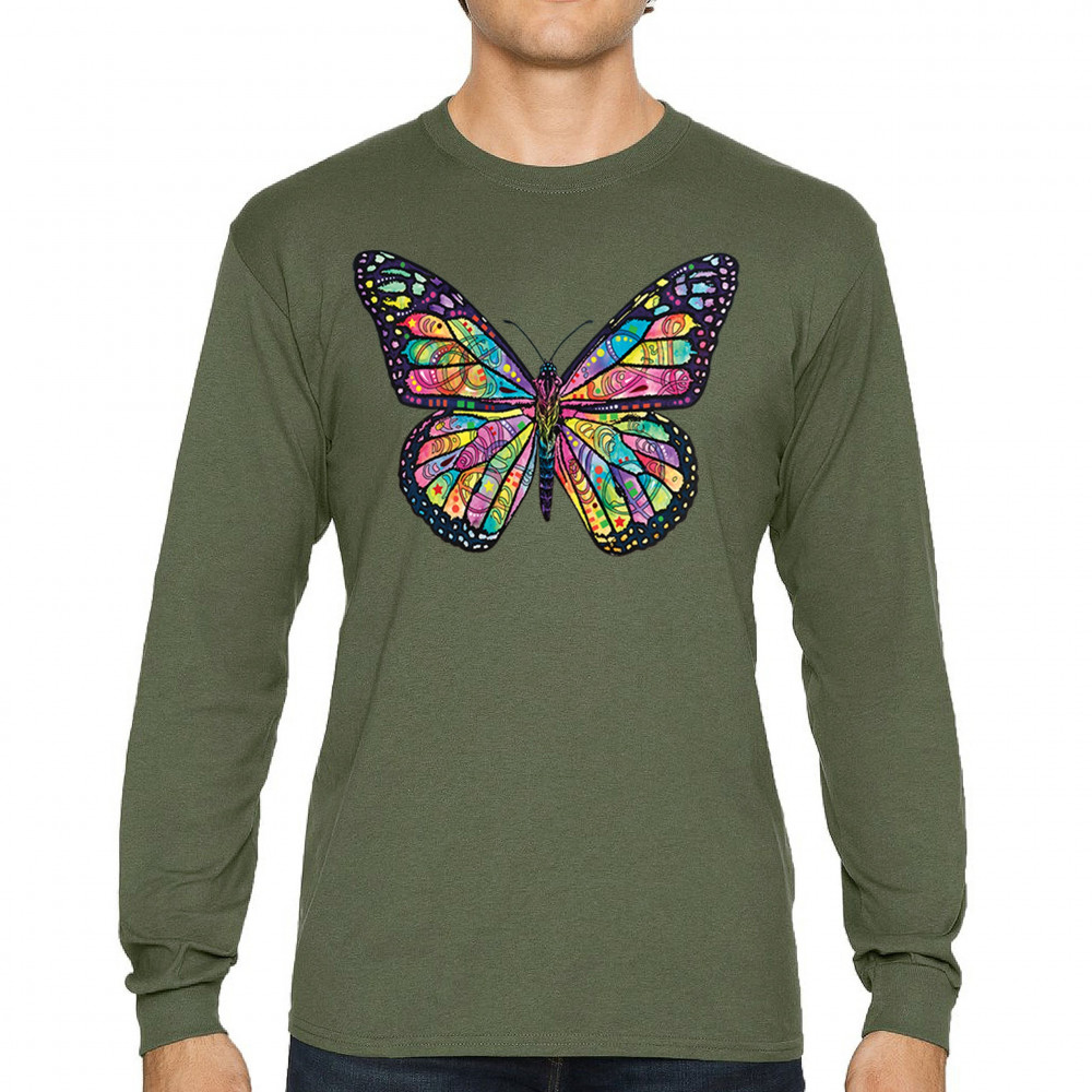 COLORFUL NEON BUTTERFLY long sleeve t-shirt dean russo beautiful nature military green