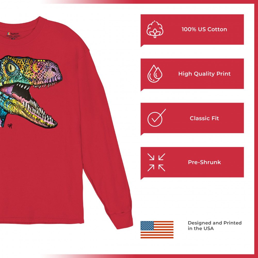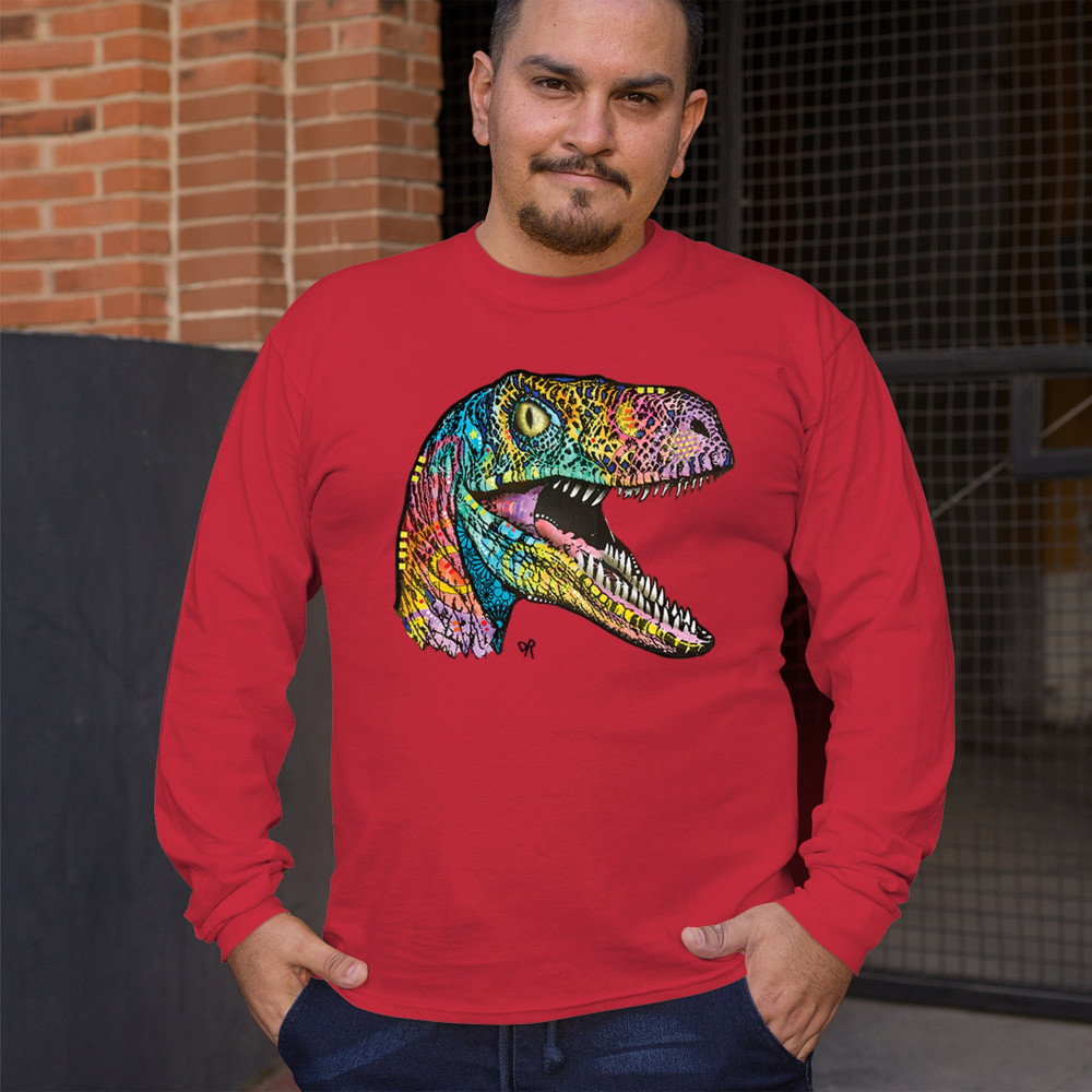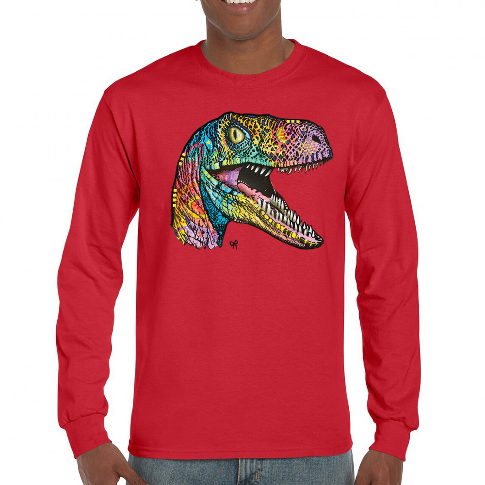 COLORFUL RAPTOR long sleeve t-shirt dean russo neon jurassic dinosaur red
