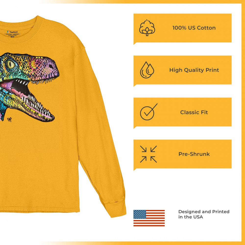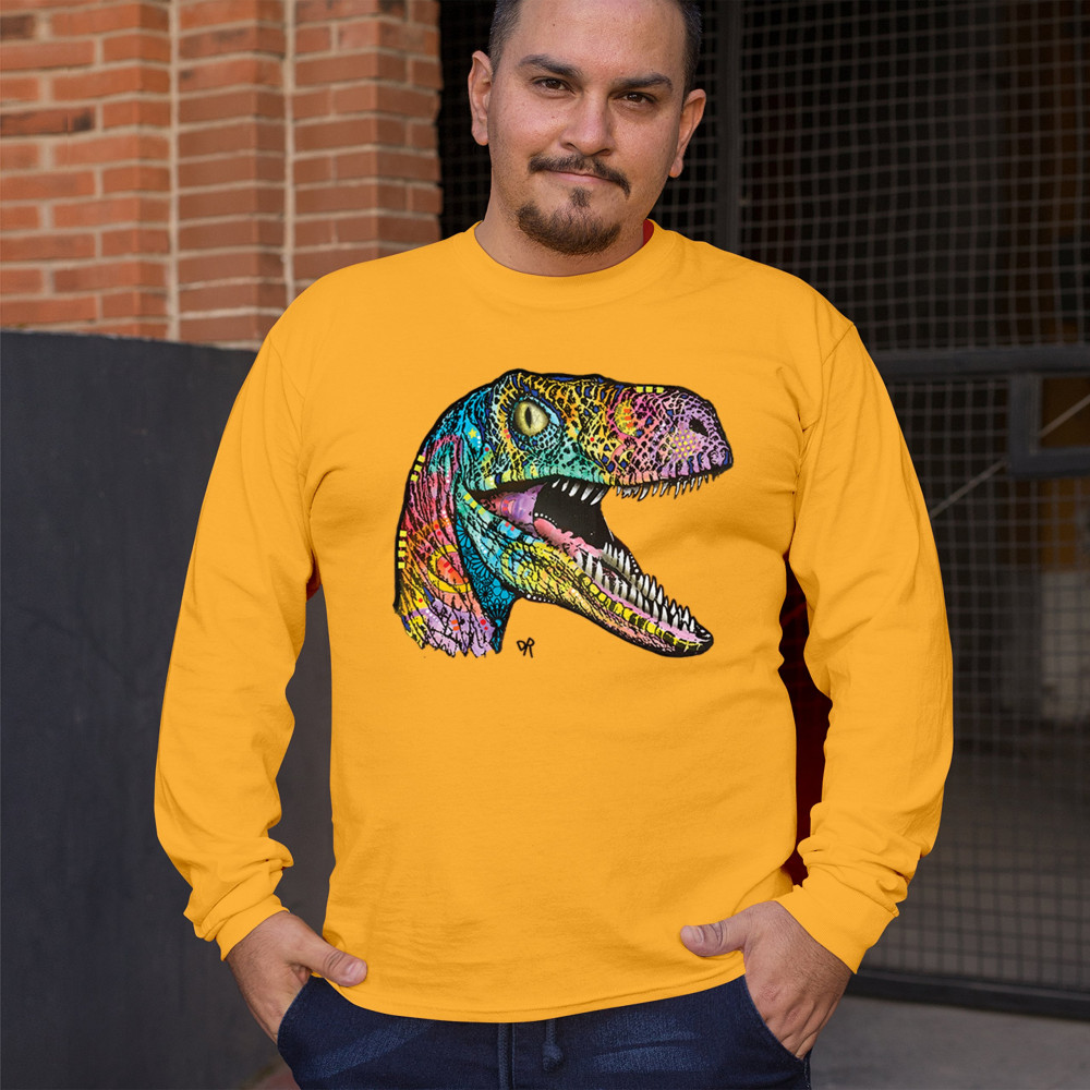 COLORFUL RAPTOR long sleeve t-shirt dean russo neon jurassic dinosaur yellow