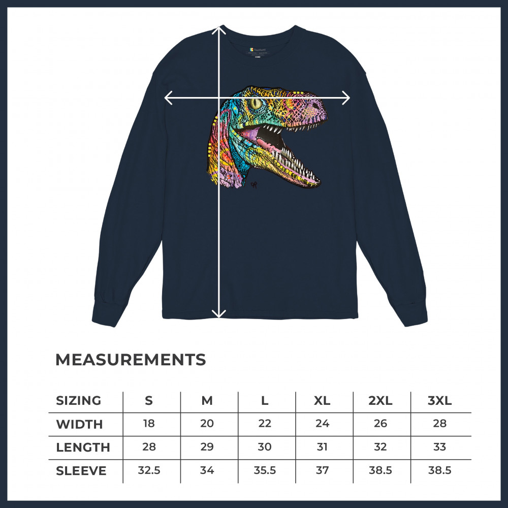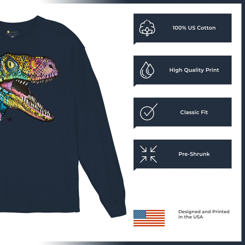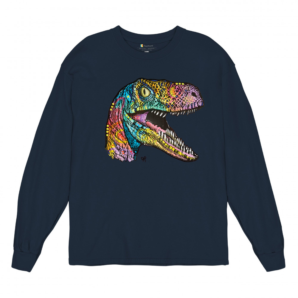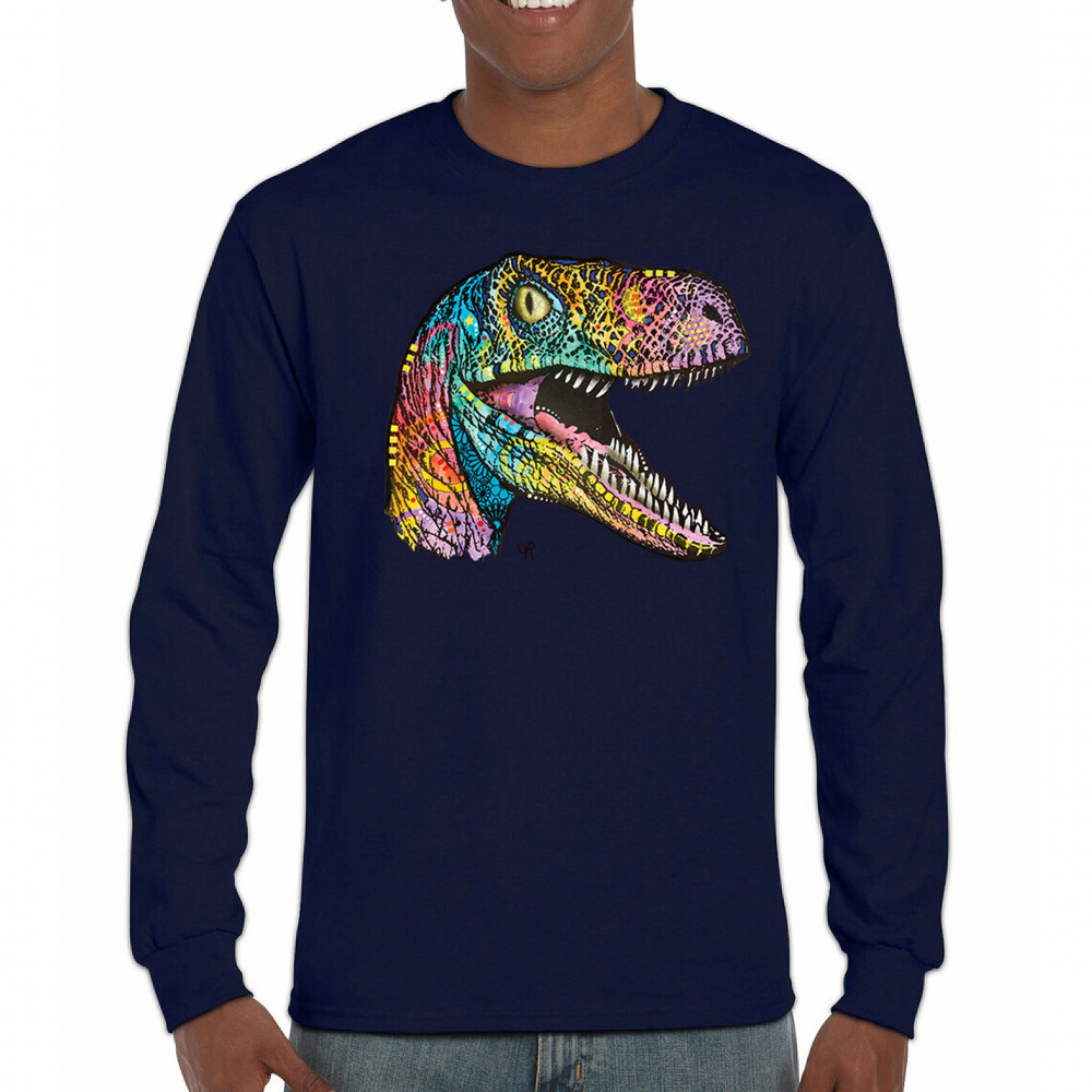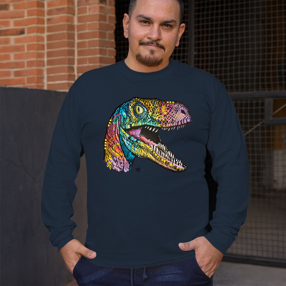 COLORFUL RAPTOR long sleeve t-shirt dean russo neon jurassic dinosaur navy blue