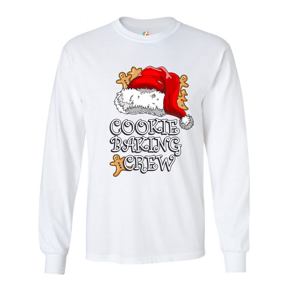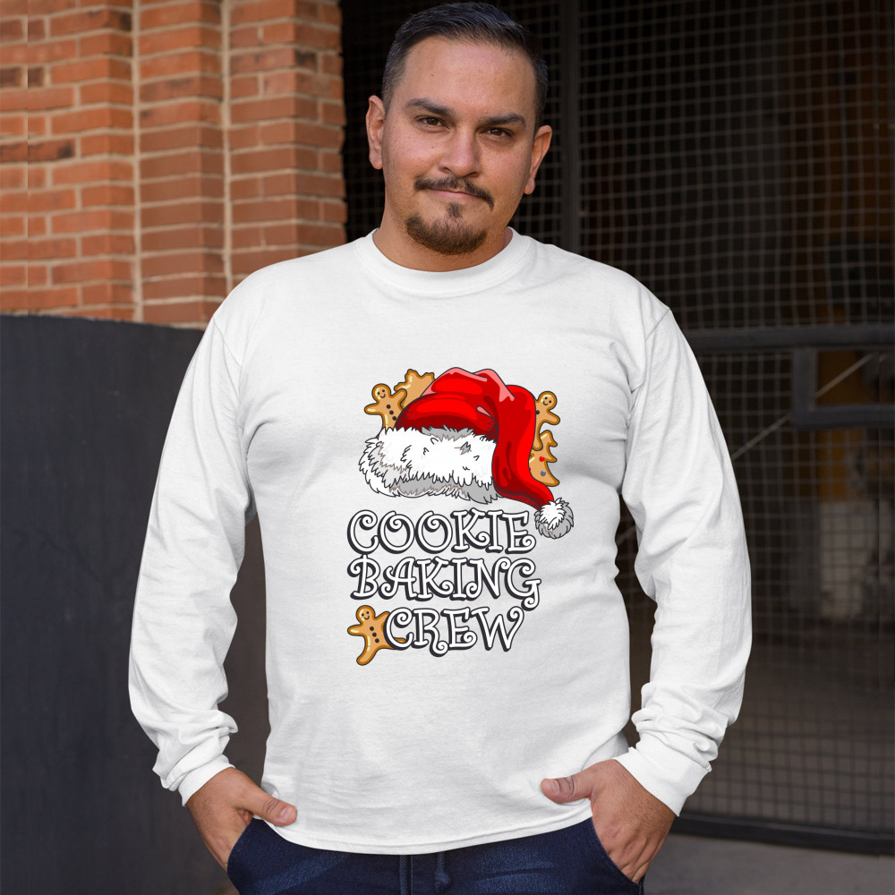 COOKIE BAKING CRUE long sleeve t-shirt santa's hat christmas gingerbread men white