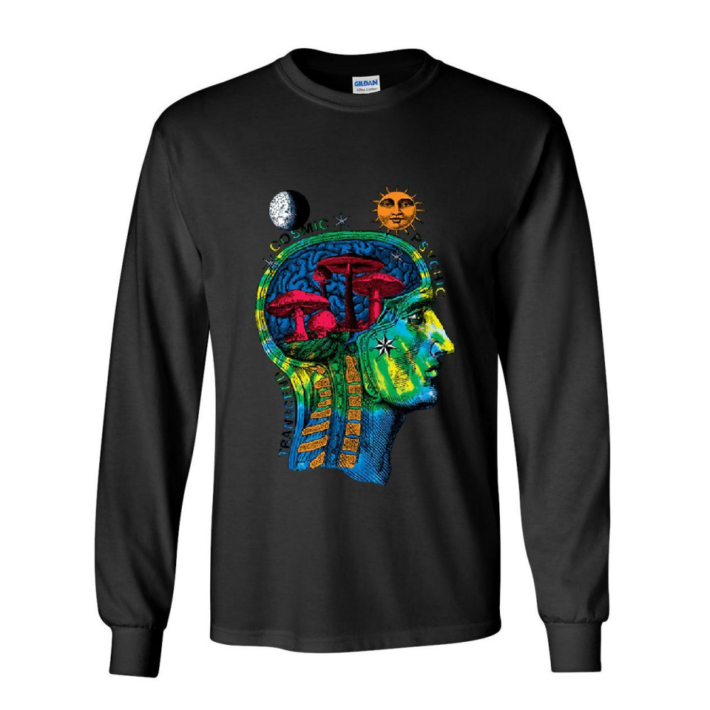 MUSHROOM HEAD cosmic psychic transcend long sleeve t-shirt psychedelic trippy weird space tee black