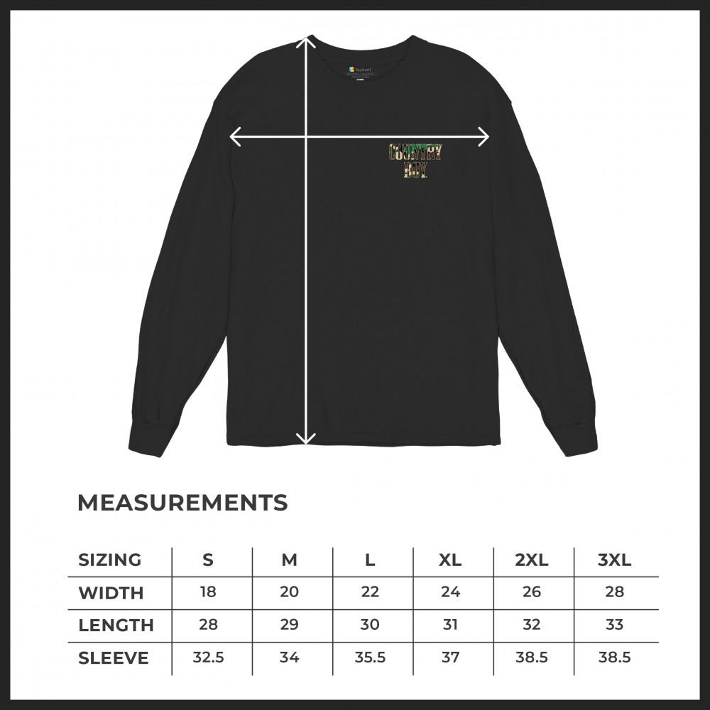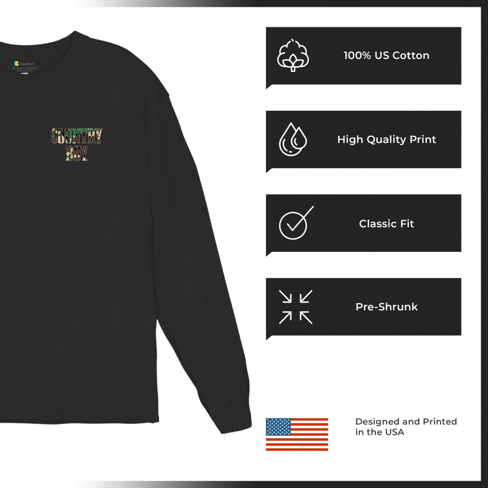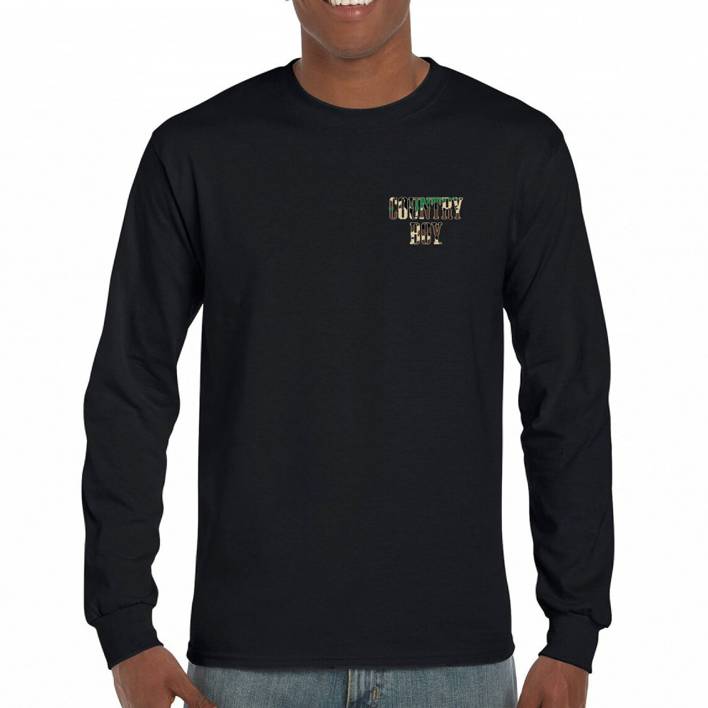COUNTRY BOY CAMO CREST long sleeve t-shirt small town rodeo cowboy military black