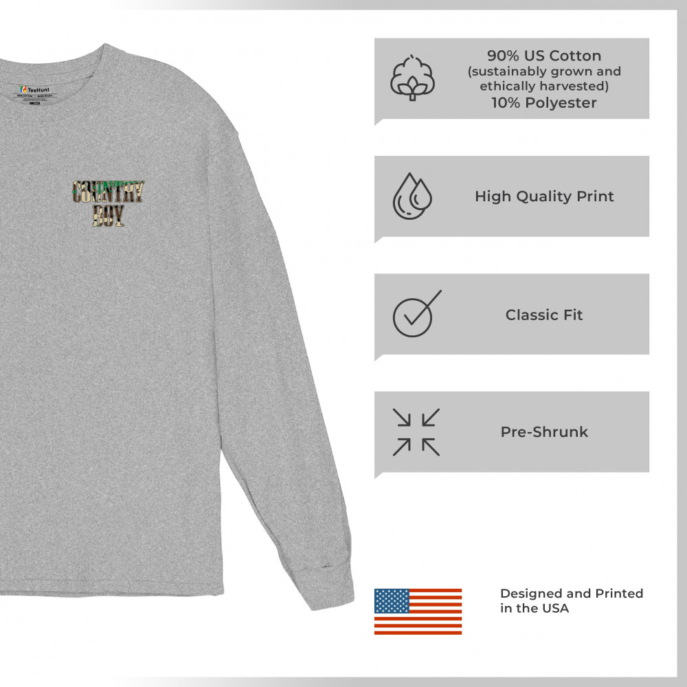 Country Boy Camo embodies rugged outdoor spirit and American pride with bold camo print lettering. Perfect for country music fans, cowboys, and outdoorsy souls who love hunting, farm life, and small town vibes. This design celebrates country roots, southern grit, and American heritage, offering great value for anyone proud to live wild and free.