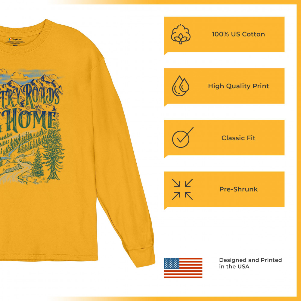 Country Roads Take Me Home blends rustic mountain beauty with Appalachian vibes and a love for country music. Perfect for wilderness spirit seekers, cabin vibes lovers, and those who live for nature escapes, it celebrates American heritage and small town life. A great value for anyone who finds freedom along winding roads and hiking trails.