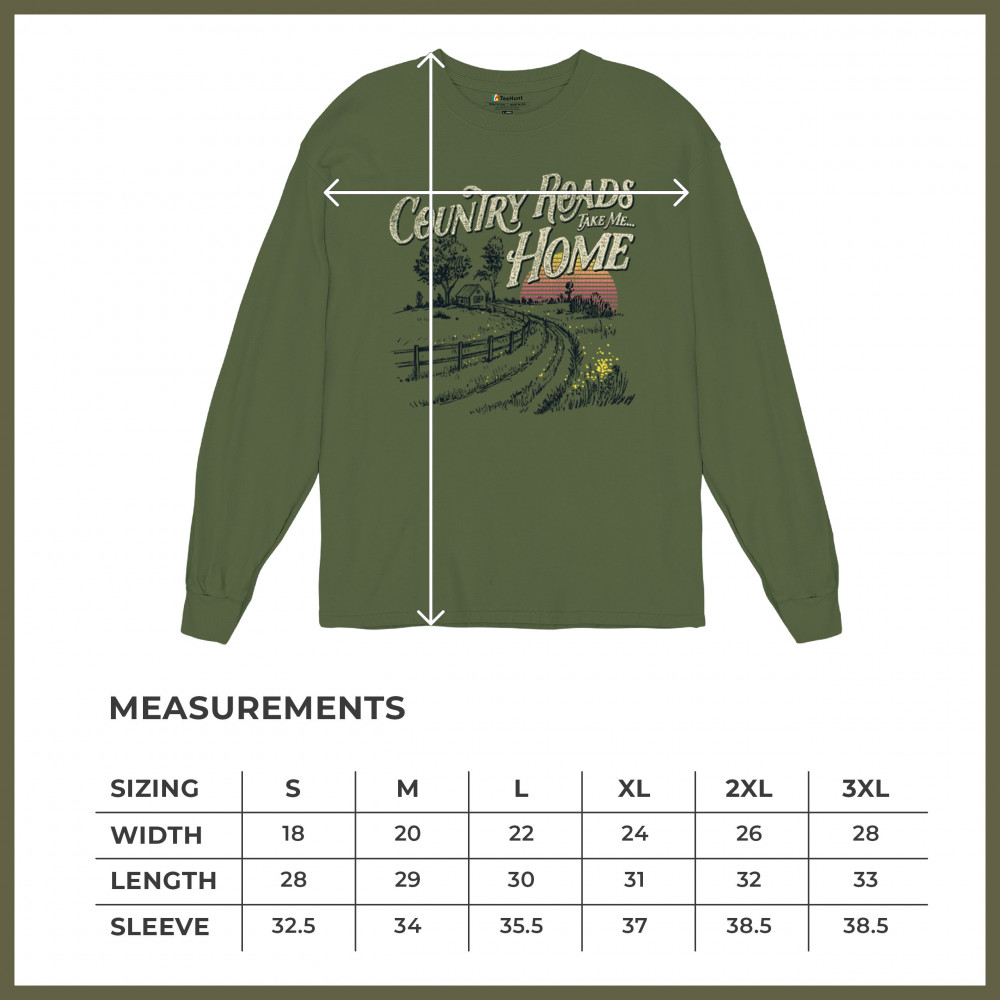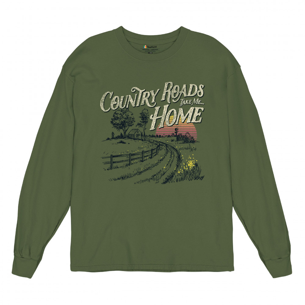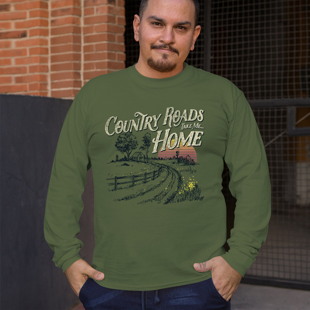 Celebrate your love for small town charm and scenic drives with this nostalgic country roads design. Featuring a bold "Take Me Home" message over a retro-styled sunset, it’s ideal for road trips, summer nights, fairs, concerts, and rural adventures. Let your wanderlust and country soul shine in every mile.