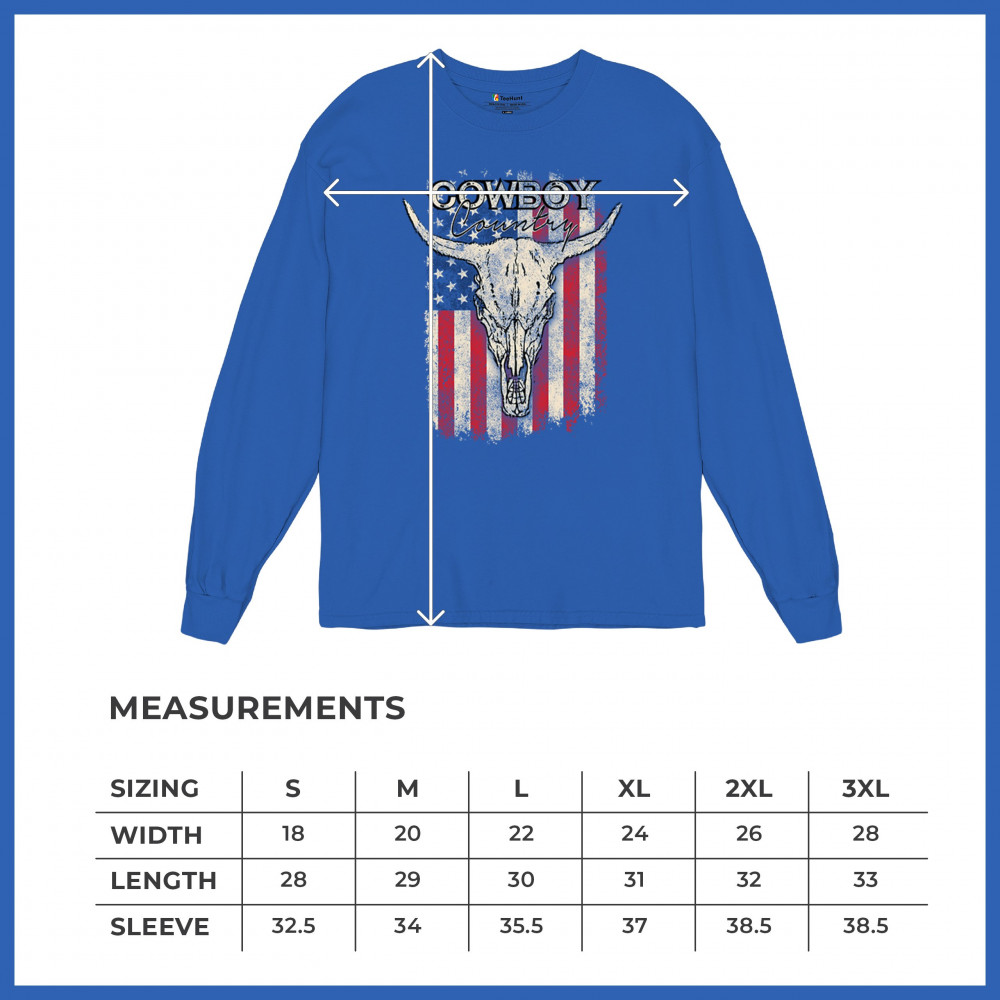 Celebrate western heritage with the Cowboy Country steer skull design, layered over a distressed American flag. This artwork embodies rustic Americana, rodeo style, and desert vibes. Perfect for cowboy décor lovers, ranch life enthusiasts, and those drawn to the wild west’s grit and prairie aesthetic. Wear your frontier spirit proudly.