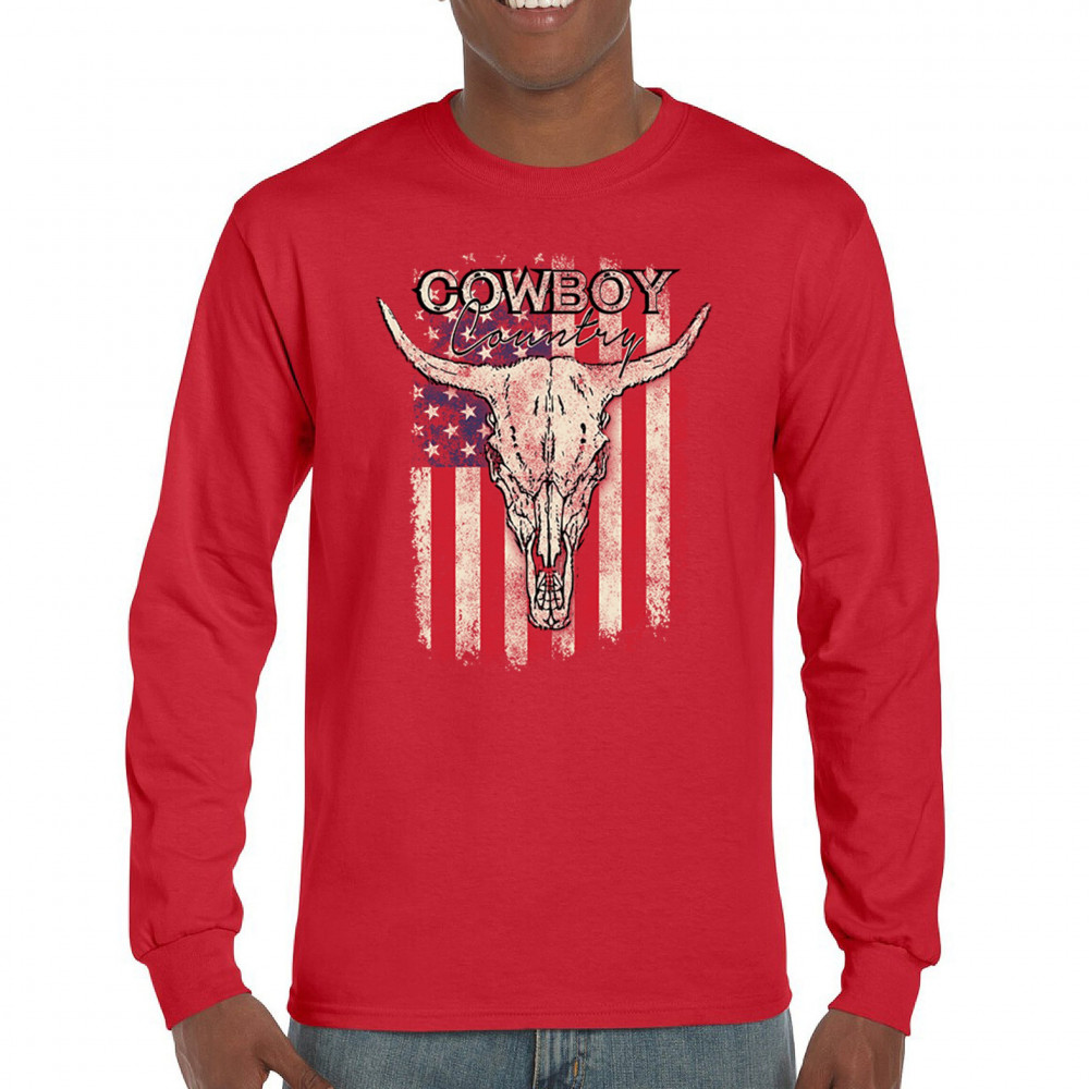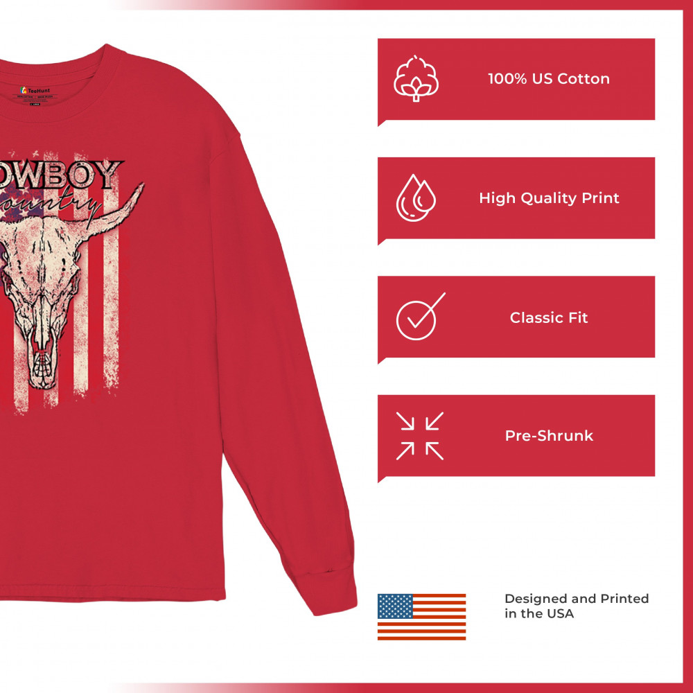 Cowboy Country steer skull design fuses rustic Americana, rodeo style, western heritage, and desert vibes for true frontier spirit.