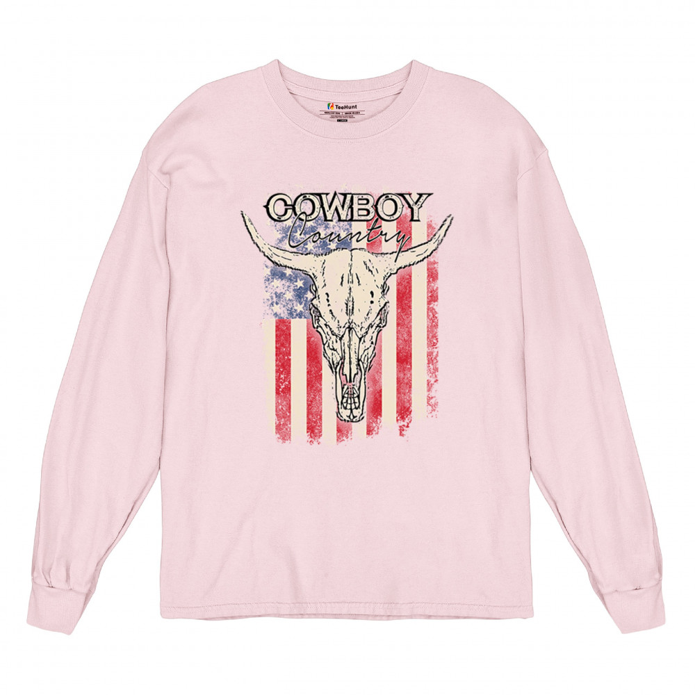 Celebrate western heritage with the Cowboy Country steer skull design, layered over a distressed American flag. This artwork embodies rustic Americana, rodeo style, and desert vibes. Perfect for cowboy décor lovers, ranch life enthusiasts, and those drawn to the wild west’s grit and prairie aesthetic. Wear your frontier spirit proudly.