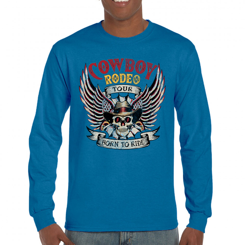 Cowboy Rodeo Tour “Born to Ride†design with skull, wings, and western grit. Built for riders, rebels, and rodeo fans who live wild.