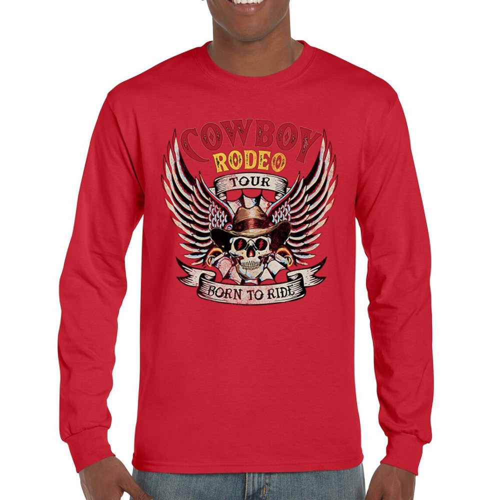 Cowboy Rodeo Tour “Born to Ride†design with skull, wings, and western grit. Built for riders, rebels, and rodeo fans who live wild.
