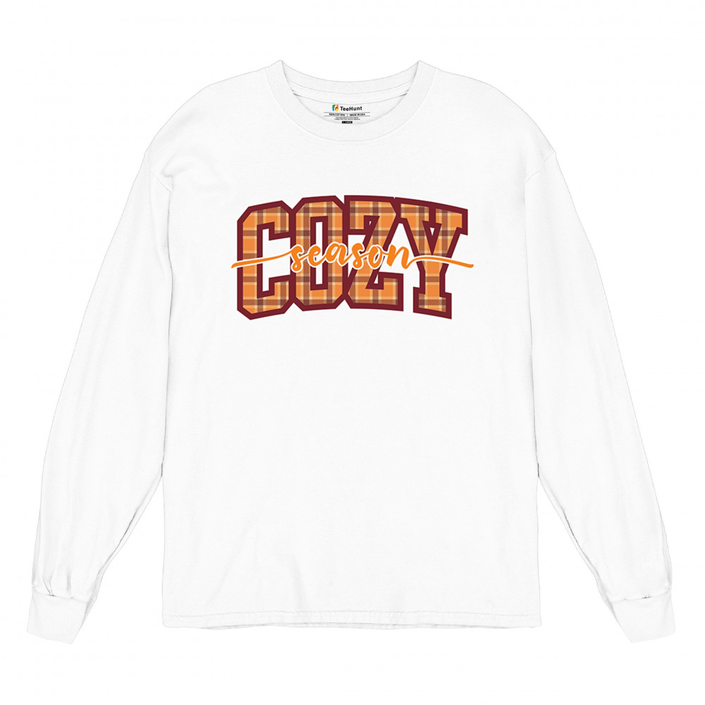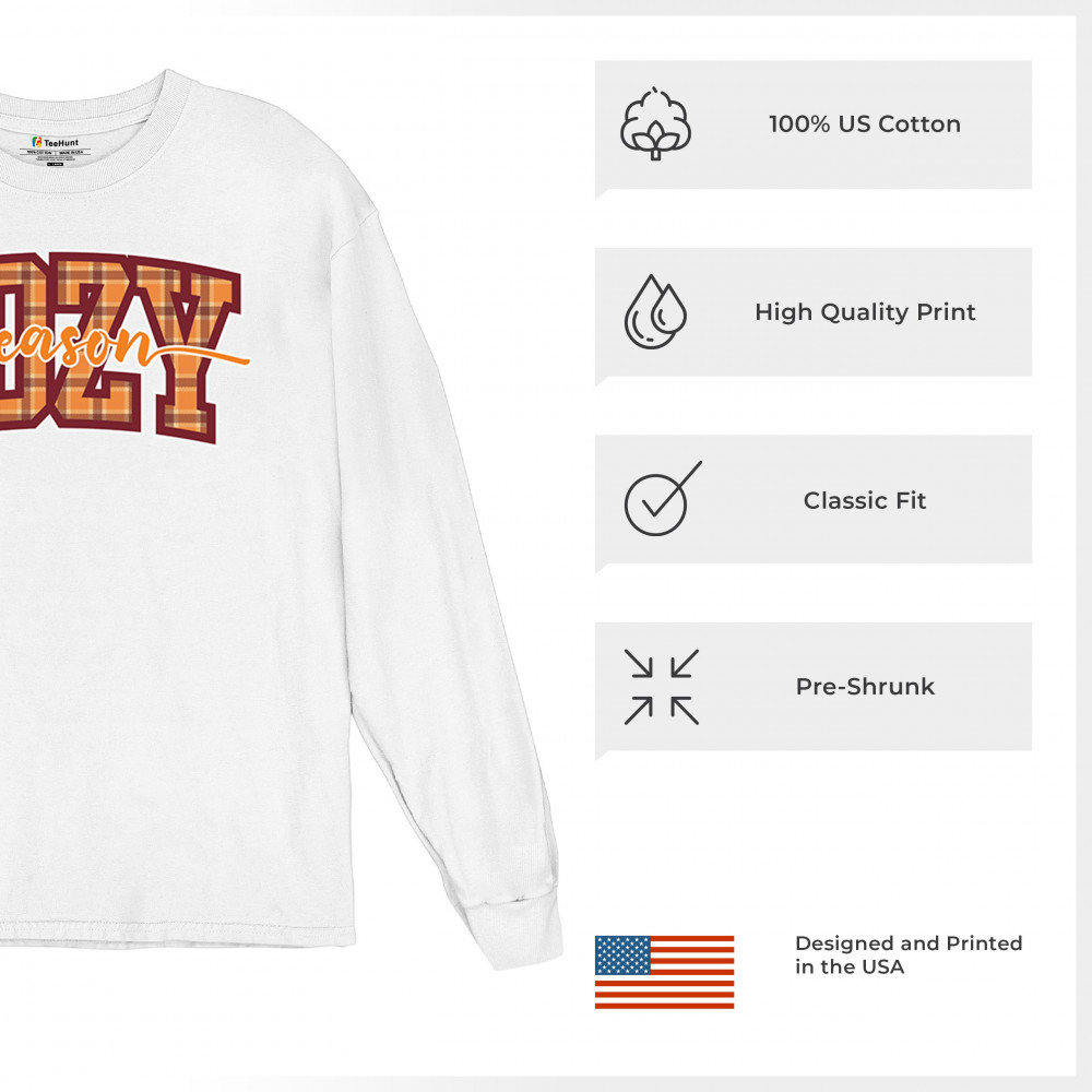 Celebrate fall with this "Cozy Season" plaid design. Perfect for autumn lovers who cherish cozy days, warm drinks, and the beauty of the season.