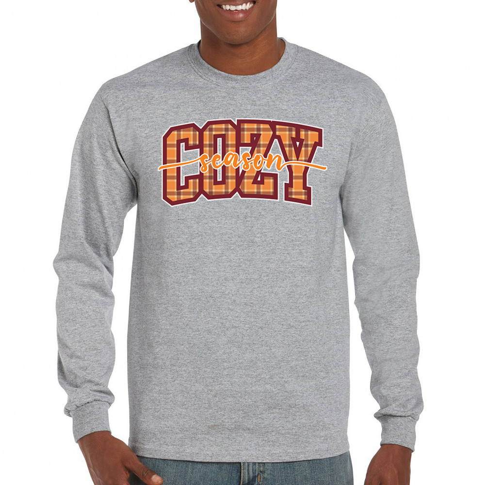 Celebrate fall with this "Cozy Season" plaid design. Perfect for autumn lovers who cherish cozy days, warm drinks, and the beauty of the season.