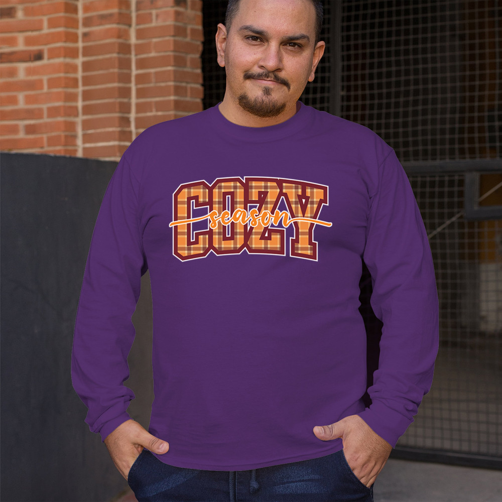 The "Cozy Season" plaid design is the perfect way to celebrate your love for all things autumn. With warm hues and a charming script, this print embodies the comfort and relaxation of the season. Whether you're spending chilly days at home or embracing the outdoor fall beauty, this design fits effortlessly into your wardrobe. It's an ideal gift for friends and family who appreciate the simple joys of autumn, including warm drinks, cozy sweaters, and the crispness of fall air.