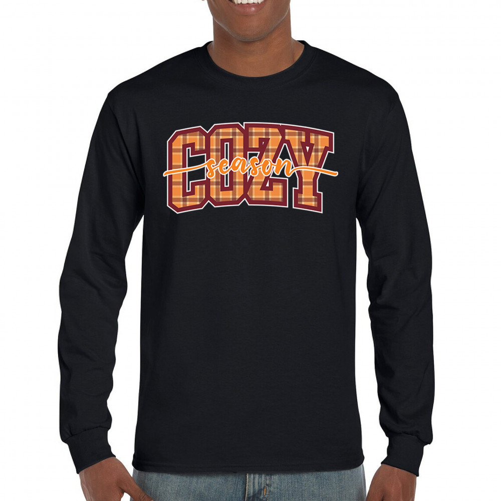 Celebrate fall with this "Cozy Season" plaid design. Perfect for autumn lovers who cherish cozy days, warm drinks, and the beauty of the season.