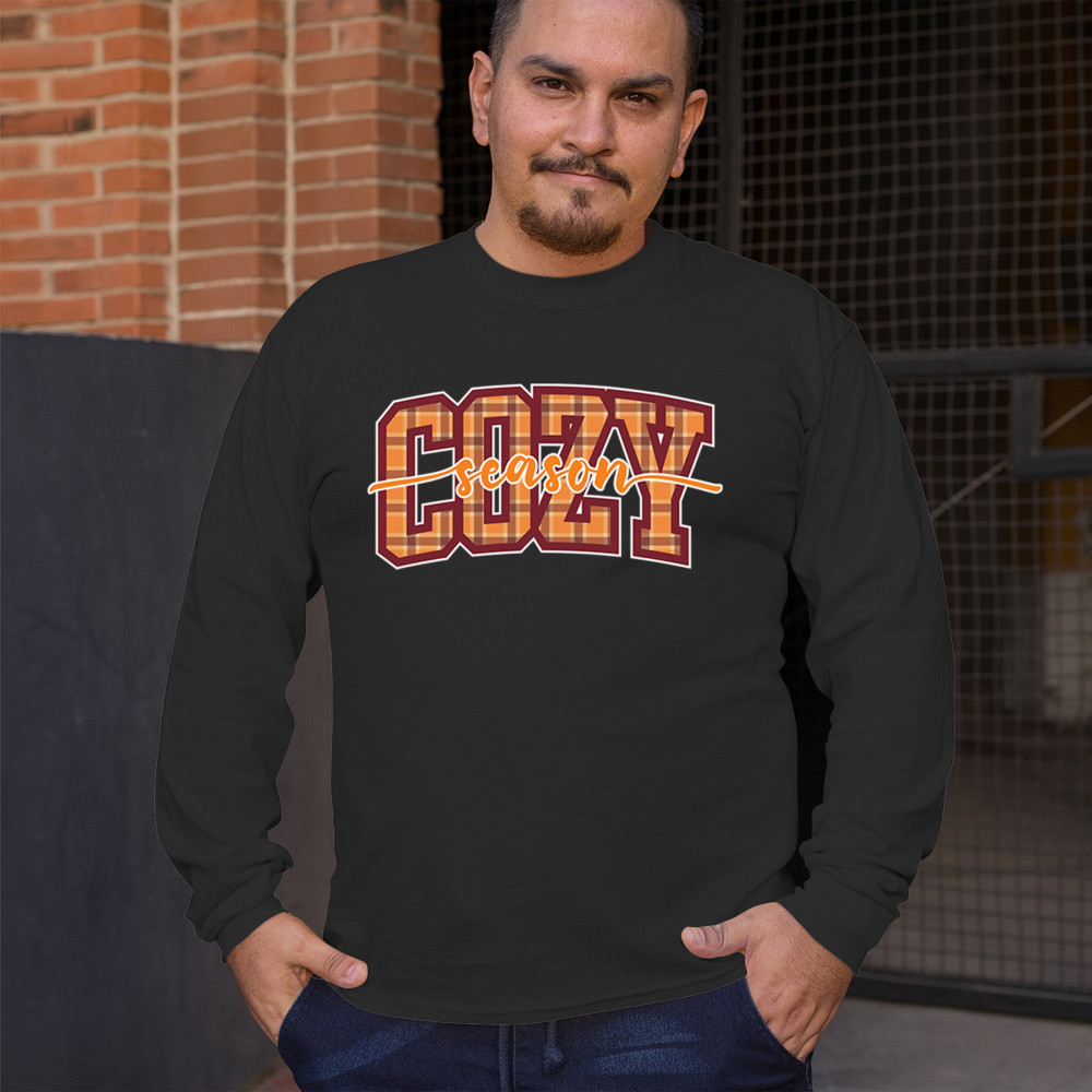 The "Cozy Season" plaid design is the perfect way to celebrate your love for all things autumn. With warm hues and a charming script, this print embodies the comfort and relaxation of the season. Whether you're spending chilly days at home or embracing the outdoor fall beauty, this design fits effortlessly into your wardrobe. It's an ideal gift for friends and family who appreciate the simple joys of autumn, including warm drinks, cozy sweaters, and the crispness of fall air.