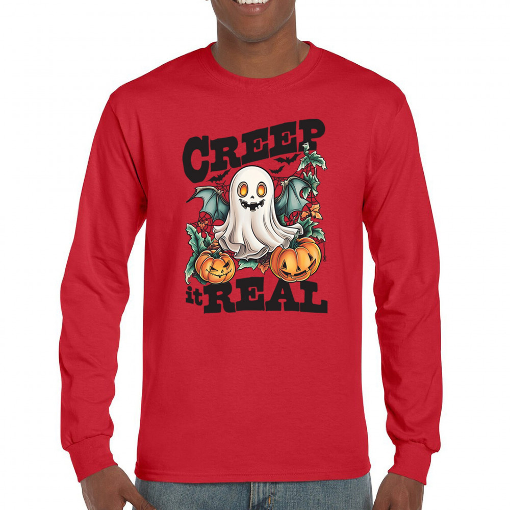 Celebrate Halloween with this playful "Creep It Real" ghost design, perfect for fall activities, pumpkin patches, and spooky parties!