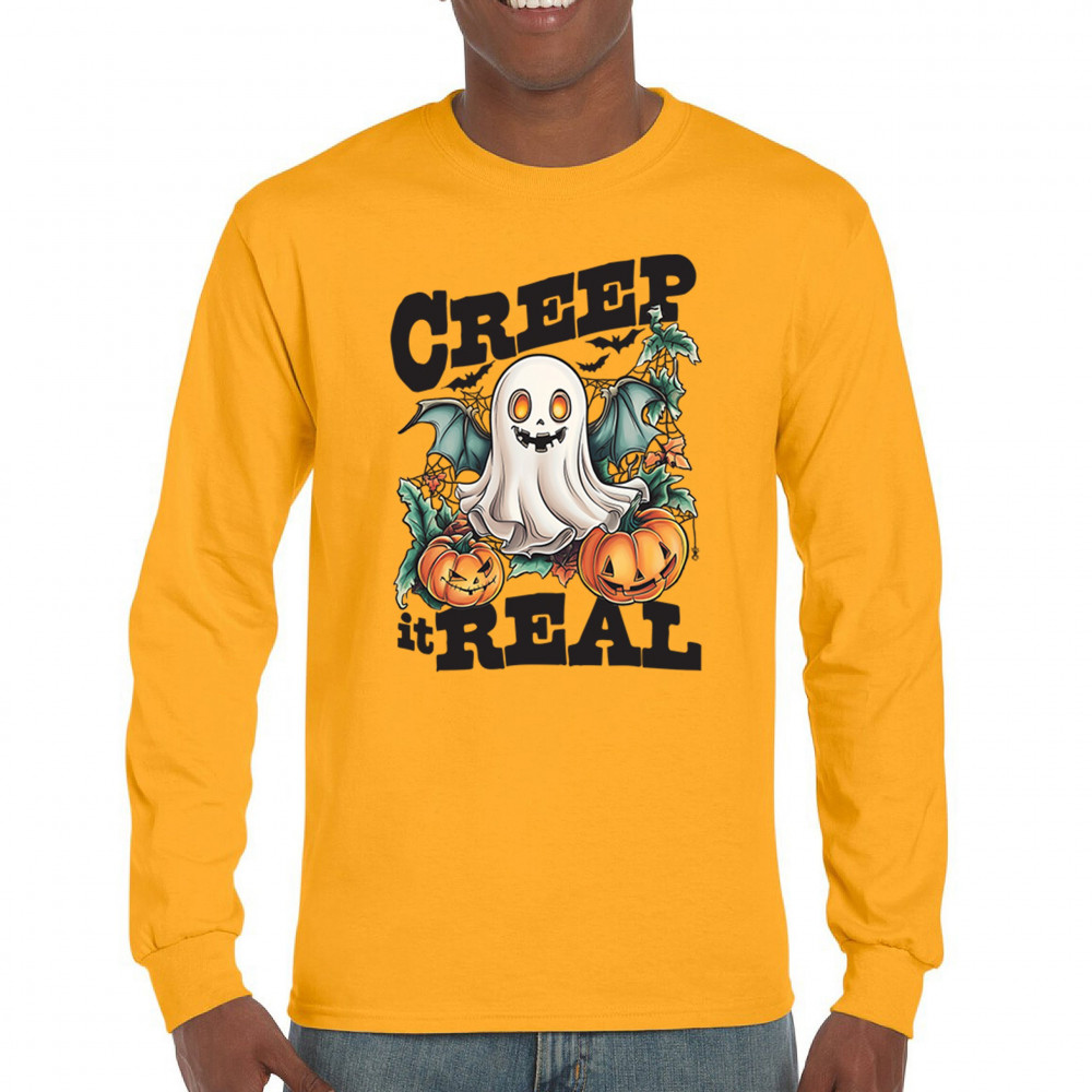 Celebrate Halloween with this playful "Creep It Real" ghost design, perfect for fall activities, pumpkin patches, and spooky parties!