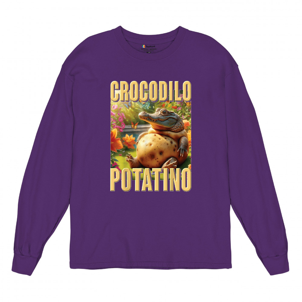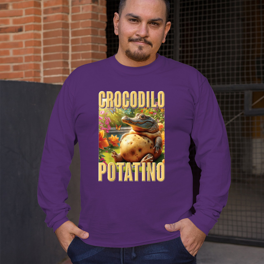 Crocodilo Potatino lives rent-free in a butterfly field of cursed bliss. This surreal croc-potato combo blends weirdcore aesthetic, viral Gen Z humor, ironic internet fashion, and TikTok meme absurdity. Built for lovers of odd animal mashups, cursed-core comedy, and viral brainrot streetwear.