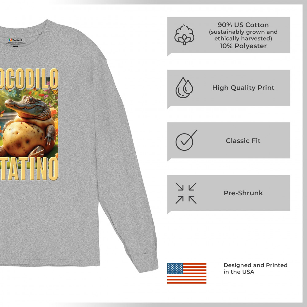 Crocodilo Potatino lives rent-free in a butterfly field of cursed bliss. This surreal croc-potato combo blends weirdcore aesthetic, viral Gen Z humor, ironic internet fashion, and TikTok meme absurdity. Built for lovers of odd animal mashups, cursed-core comedy, and viral brainrot streetwear.