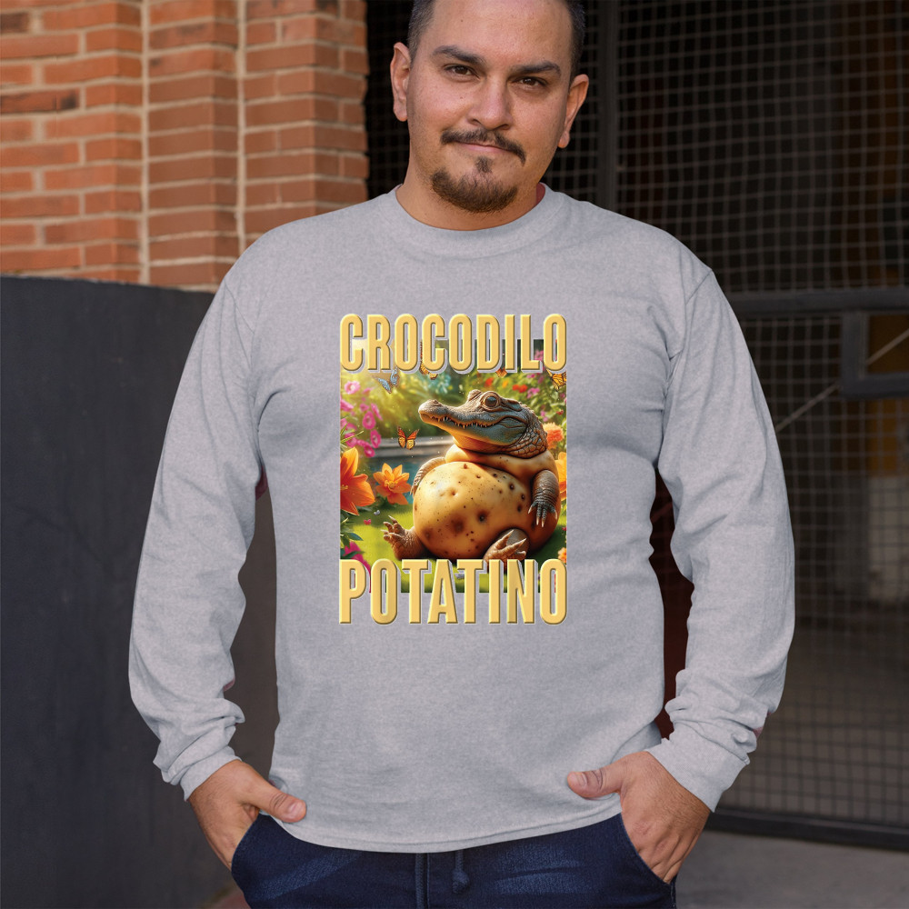 Crocodilo Potatino fuses cursed-core humor, animal mashup memes, TikTok absurdity, weirdcore aesthetic, and Gen Z viral fashion.