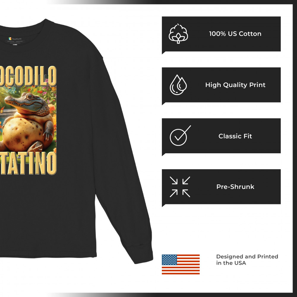 Crocodilo Potatino lives rent-free in a butterfly field of cursed bliss. This surreal croc-potato combo blends weirdcore aesthetic, viral Gen Z humor, ironic internet fashion, and TikTok meme absurdity. Built for lovers of odd animal mashups, cursed-core comedy, and viral brainrot streetwear.