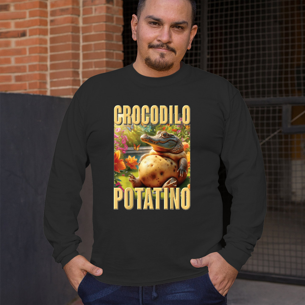 Crocodilo Potatino fuses cursed-core humor, animal mashup memes, TikTok absurdity, weirdcore aesthetic, and Gen Z viral fashion.