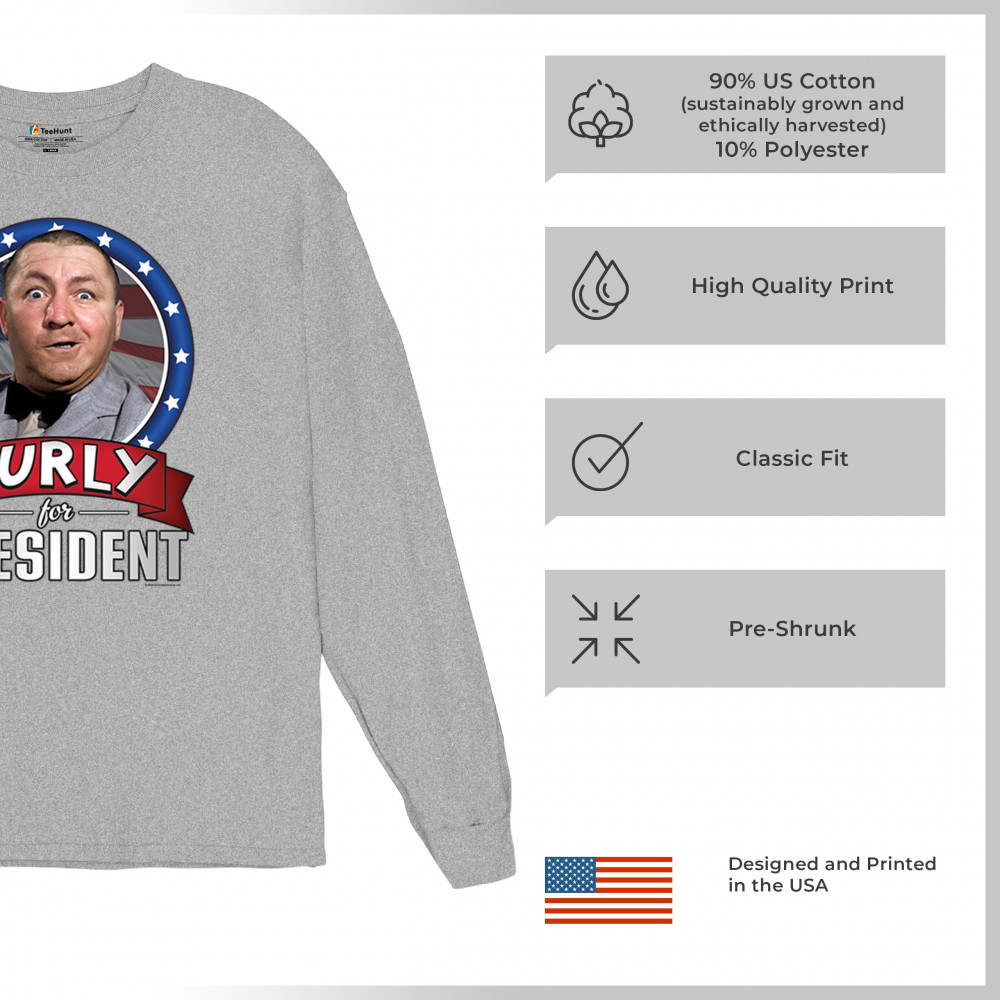 Bring laughter back to politics with our "Curly for President" design, a tribute to the golden age of comedy and a playful nod to today's political landscape. In a world where the line between Trump's and Biden's America is sharply drawn, Curly from the 3 Stooges offers a satirical third option. Perfect for those who cherish TV classics and have a sense of humor about the bipartisan divide, this retro piece puts a jolly spin on political discourse.