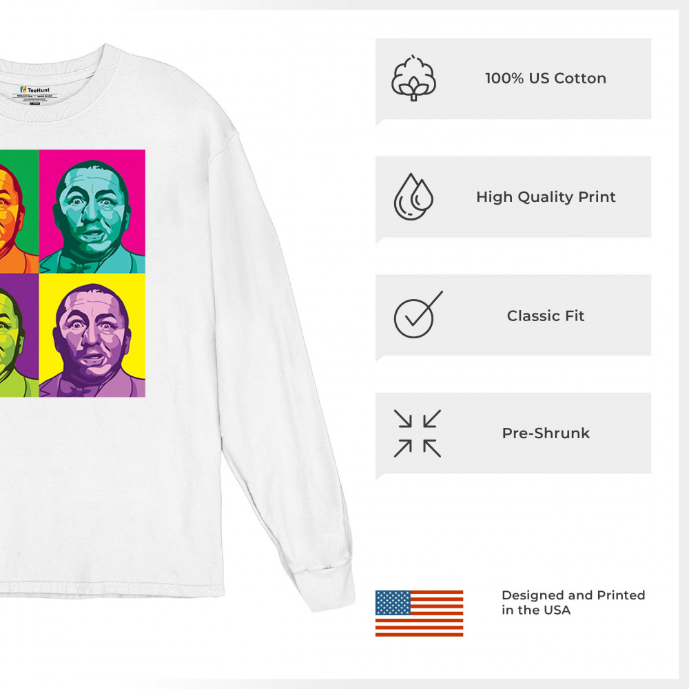 Experience Curly in full color with our pop art Three Stooges T-shirt—a fresh take on a classic that's as unique and spirited as the man himself!