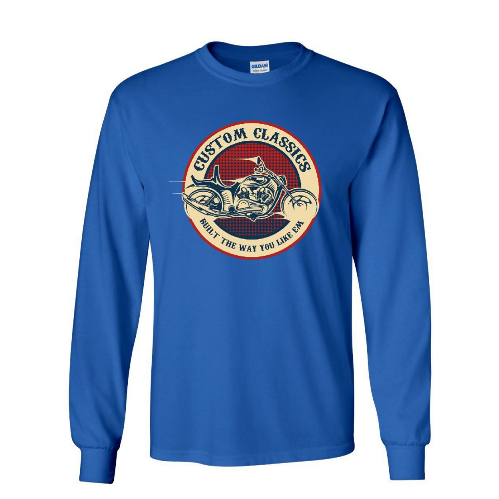 CUSTOM CLASSICS long sleeve t-shirt chopper bobber biker rte 66 live to ride tee royal blue