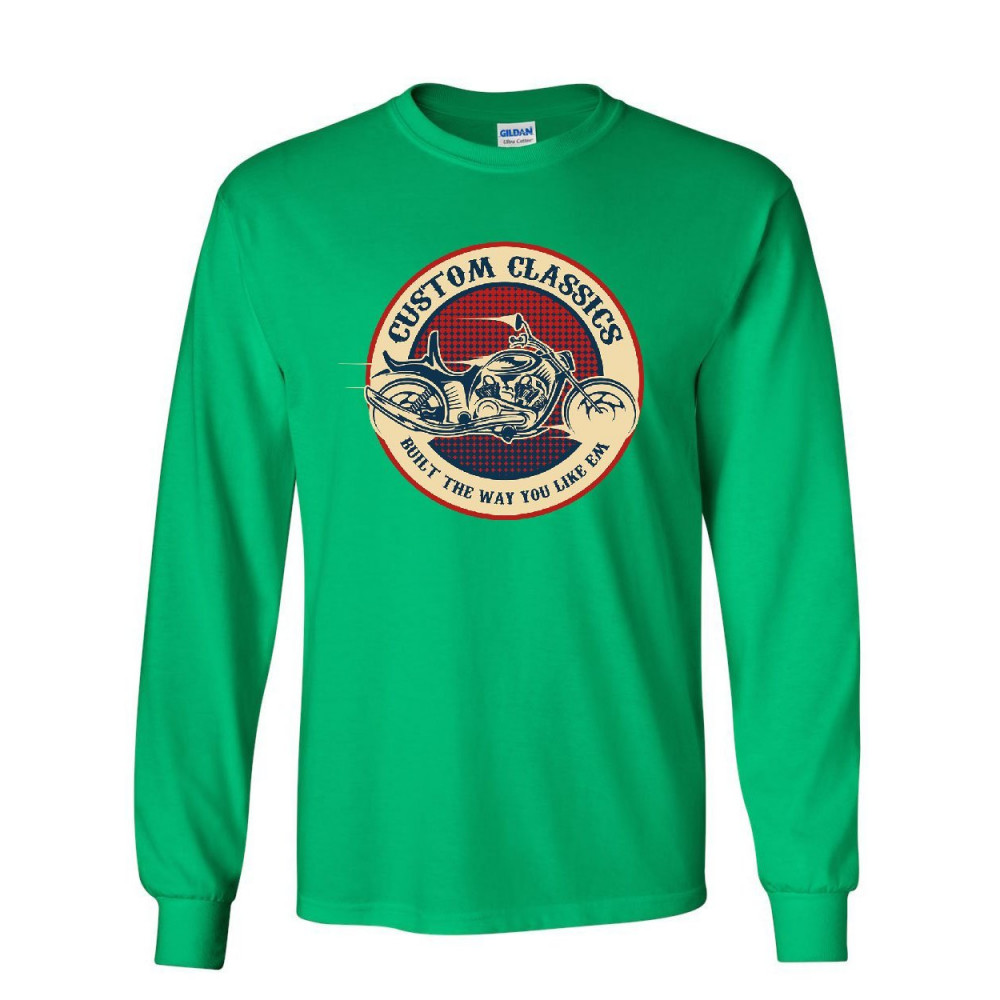 CUSTOM CLASSICS long sleeve t-shirt chopper bobber biker rte 66 live to ride tee green