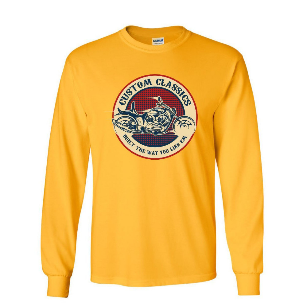 CUSTOM CLASSICS long sleeve t-shirt chopper bobber biker rte 66 live to ride tee yellow
