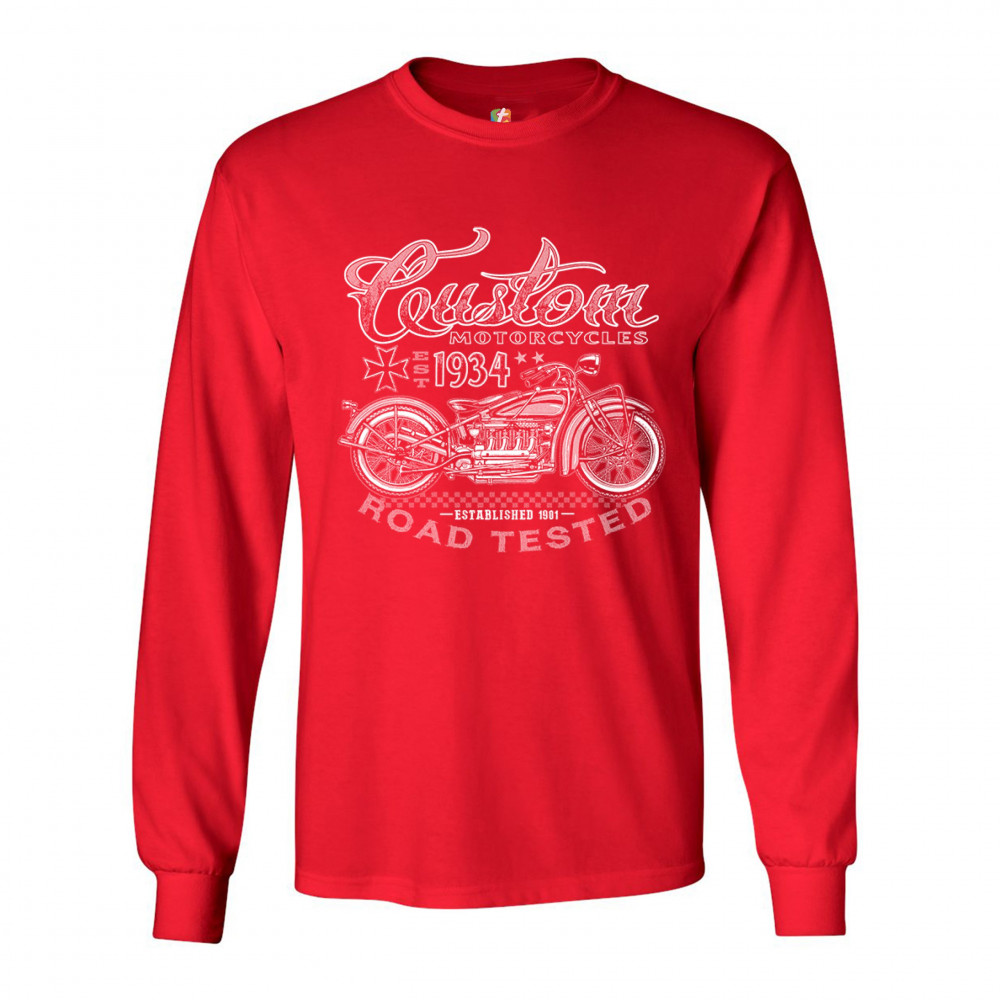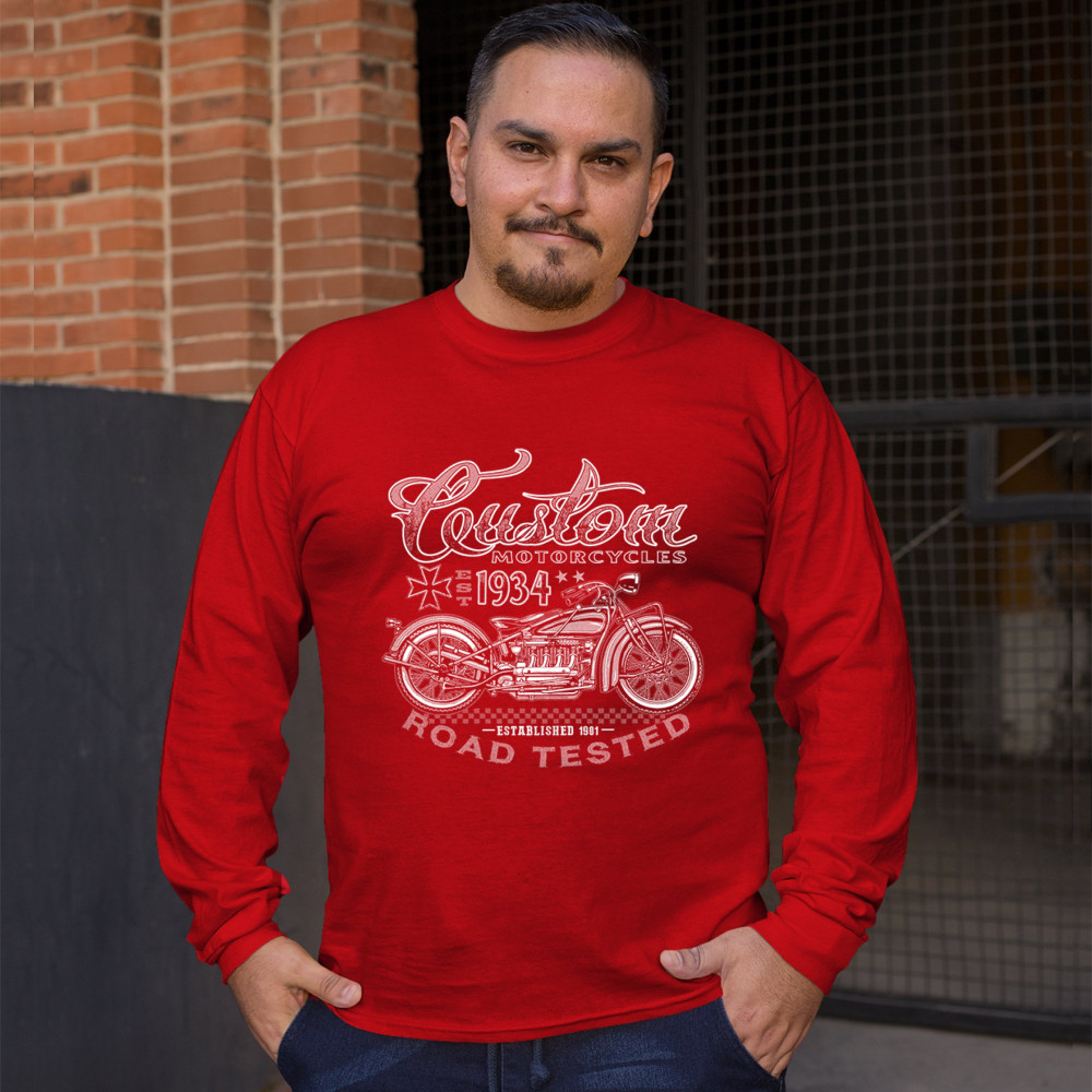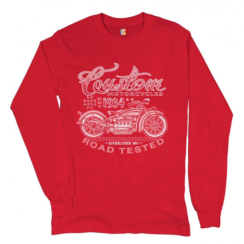 CUSTOM MOTORCYCLES ROAD TESTED long sleeve t-shirt bobber biker gang mc red