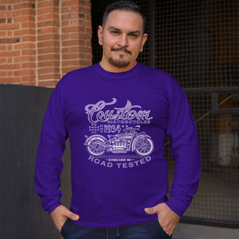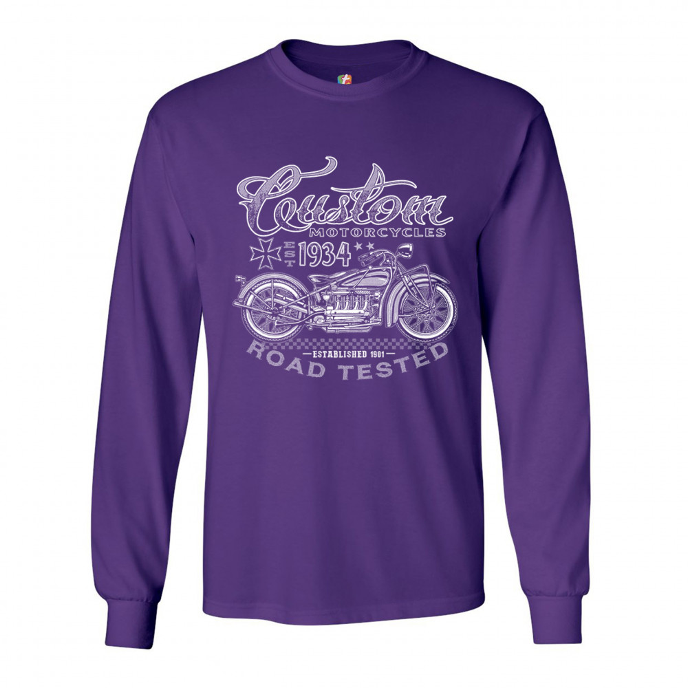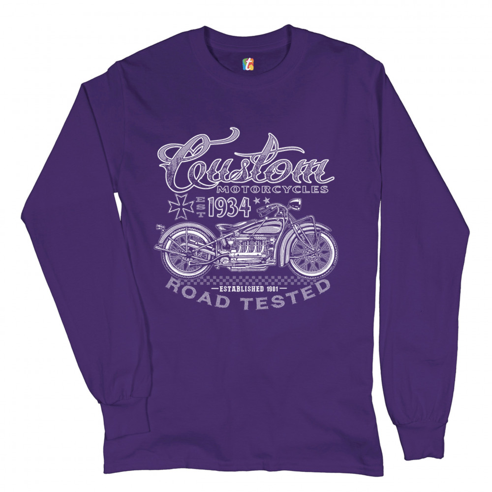 CUSTOM MOTORCYCLES ROAD TESTED long sleeve t-shirt bobber biker gang mc purple
