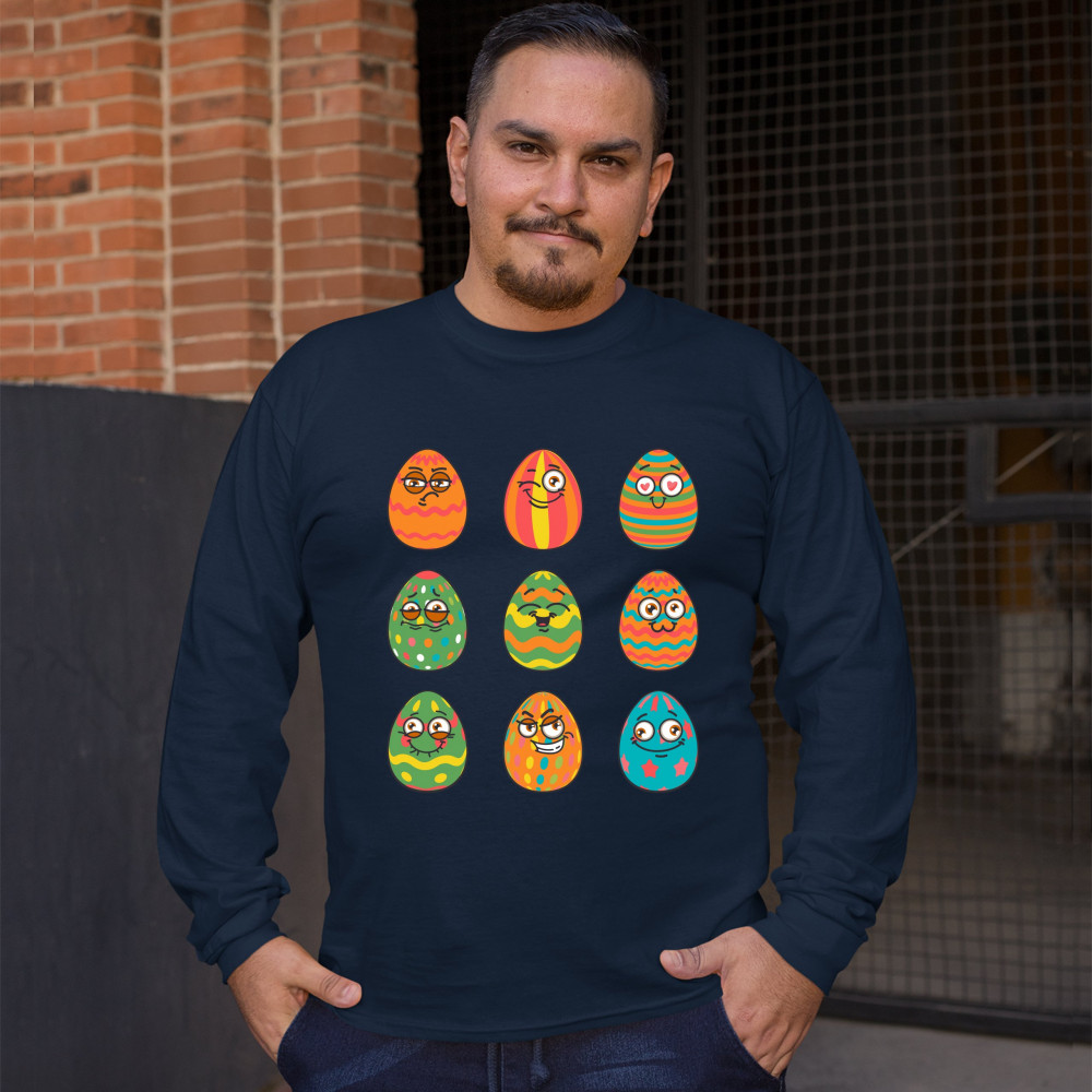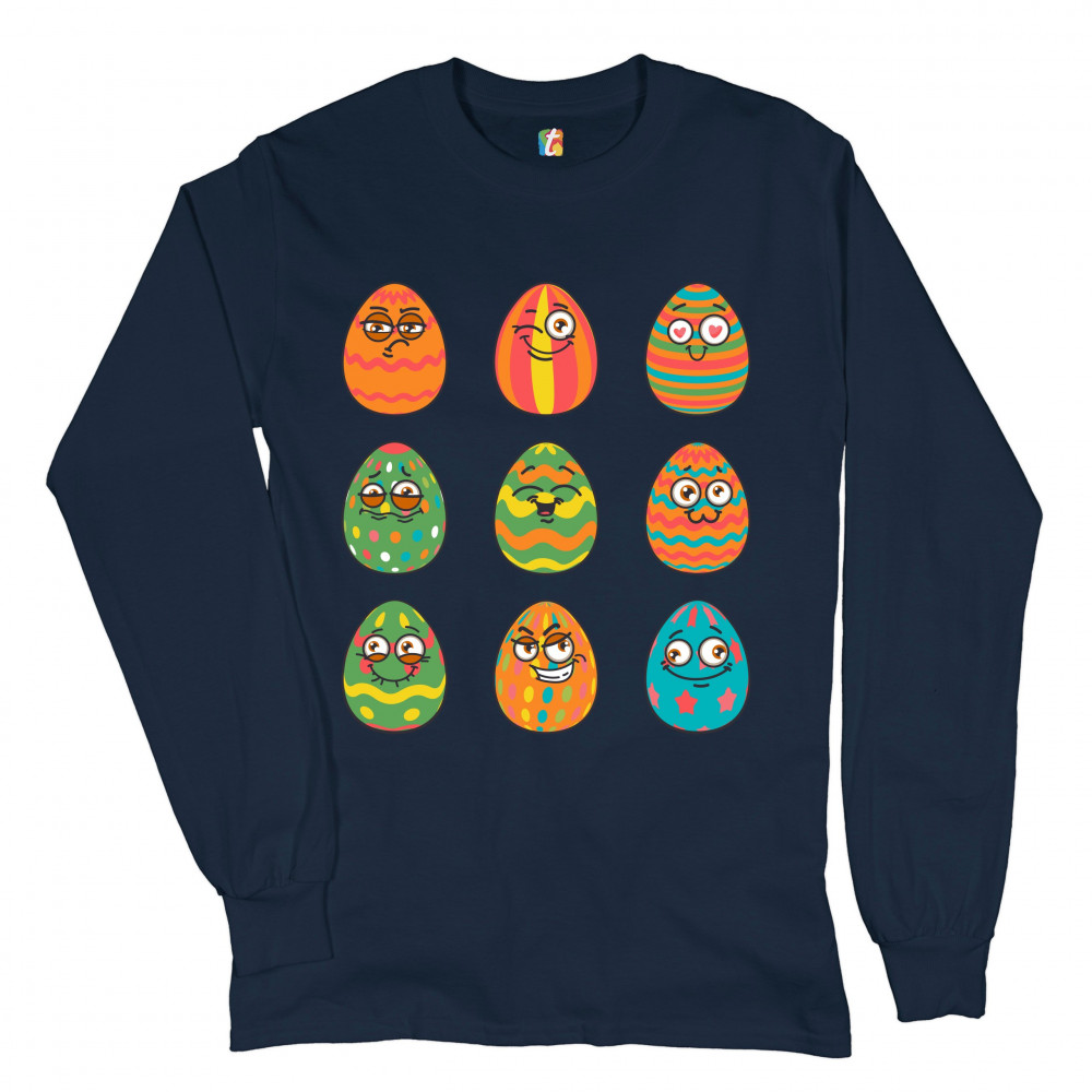CUTE EASTER EGGS long sleeve t-shirt jesus has risen happy easter egg hunt navy blue