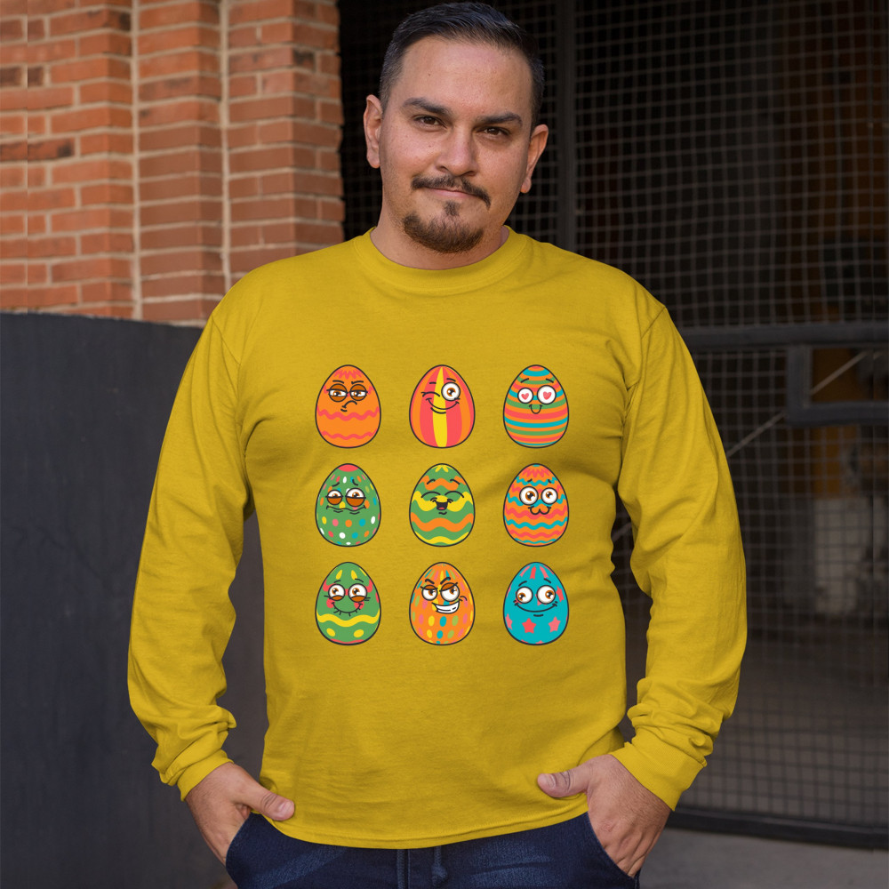 CUTE EASTER EGGS long sleeve t-shirt jesus has risen happy easter egg hunt yellow
