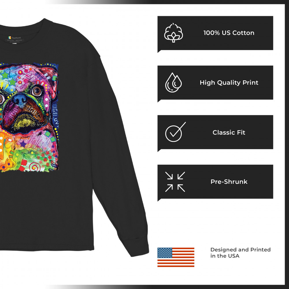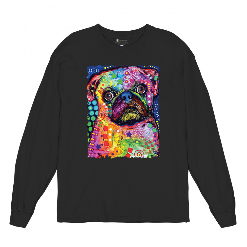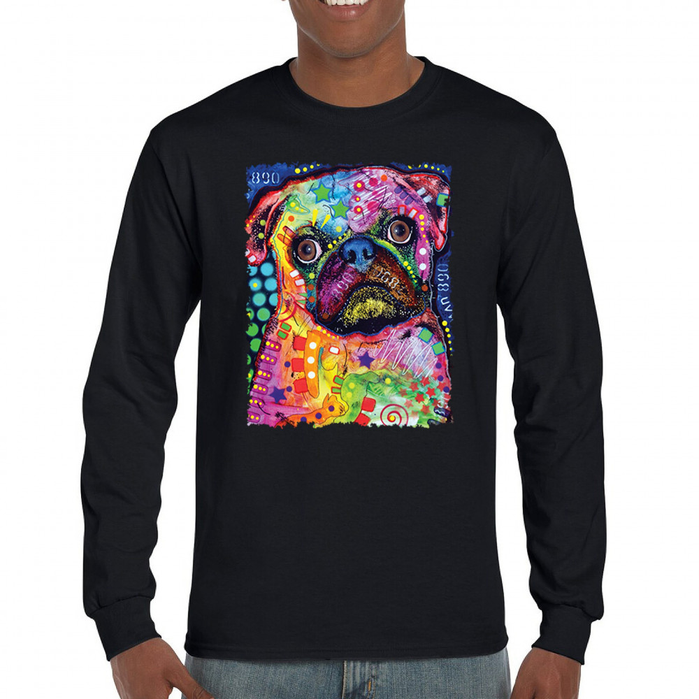 CUTE PUG PUPPY long sleeve t-shirt dean russo colorful neon mosaic dog art black
