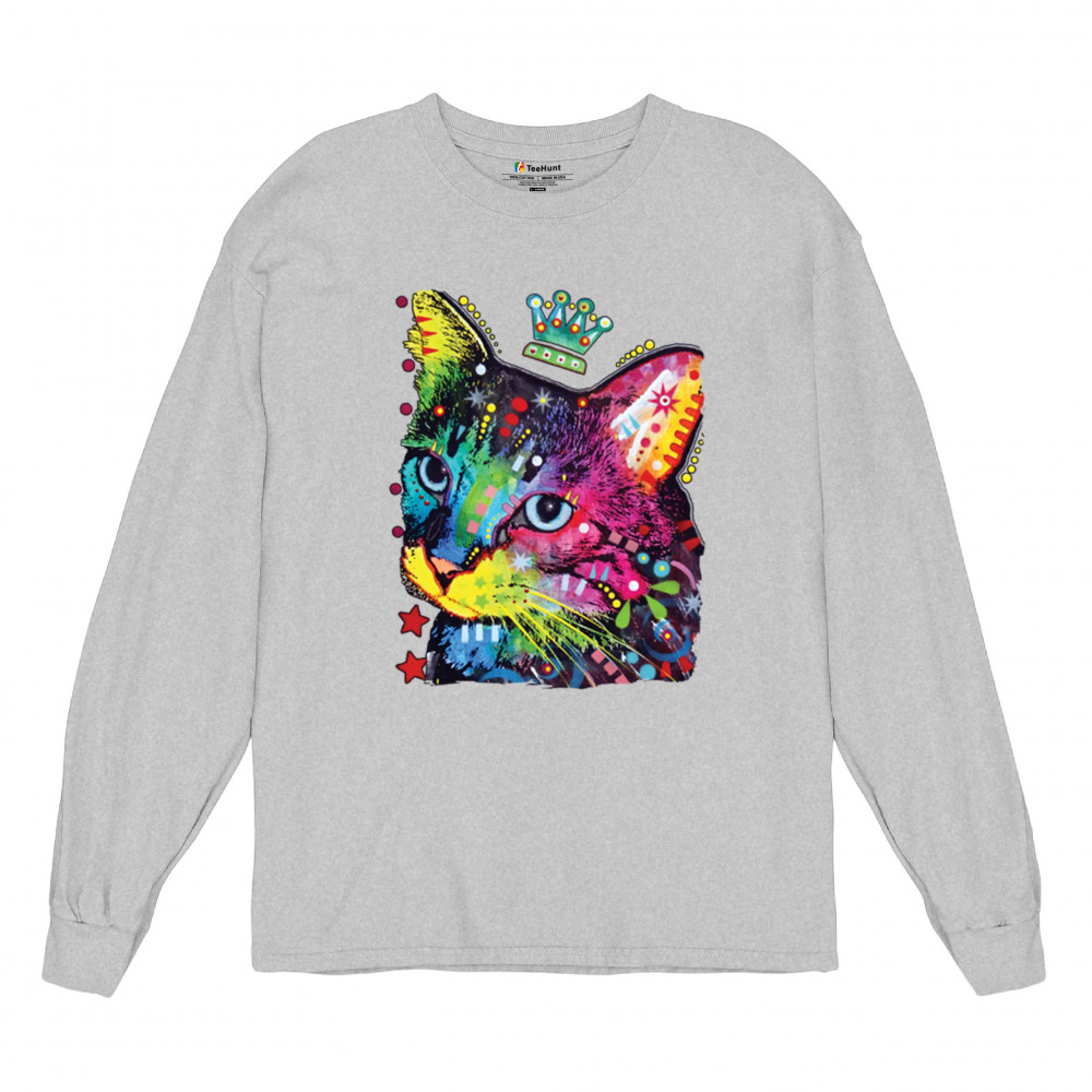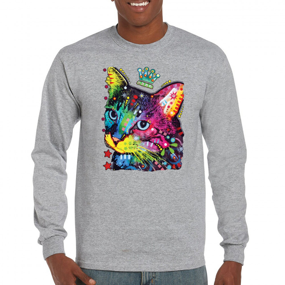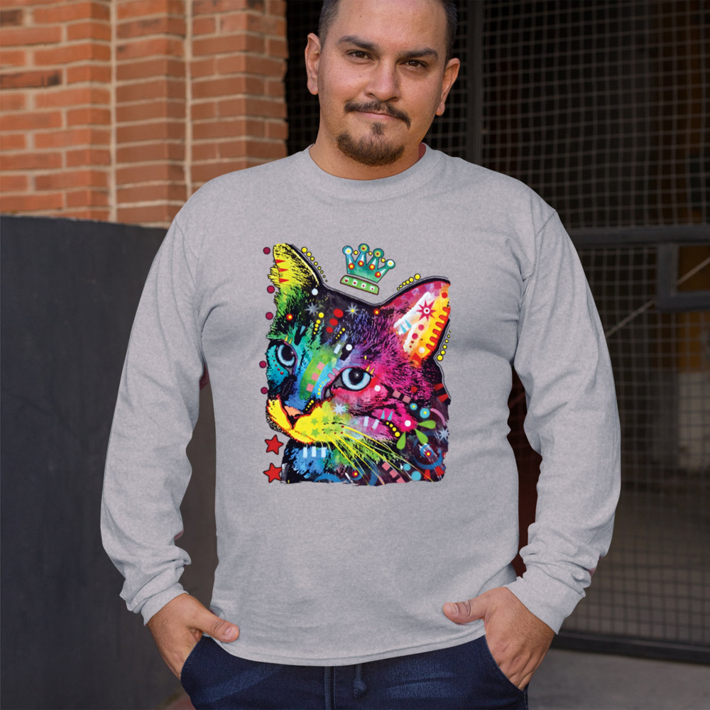 CUTE THINKING CROWNED CAT long sleeve t-shirt dean russo colorful kitten gray