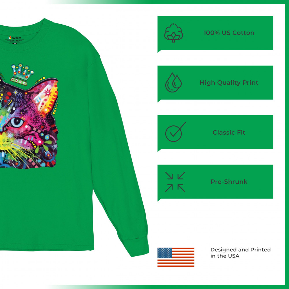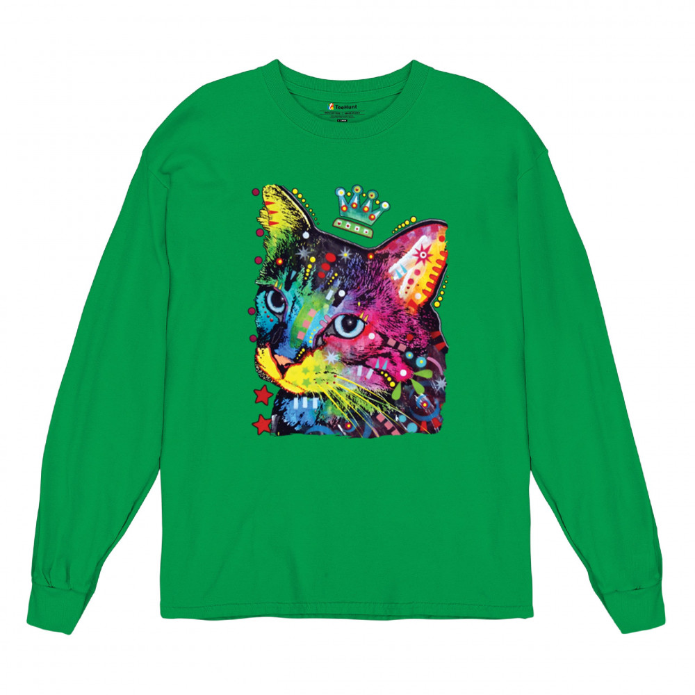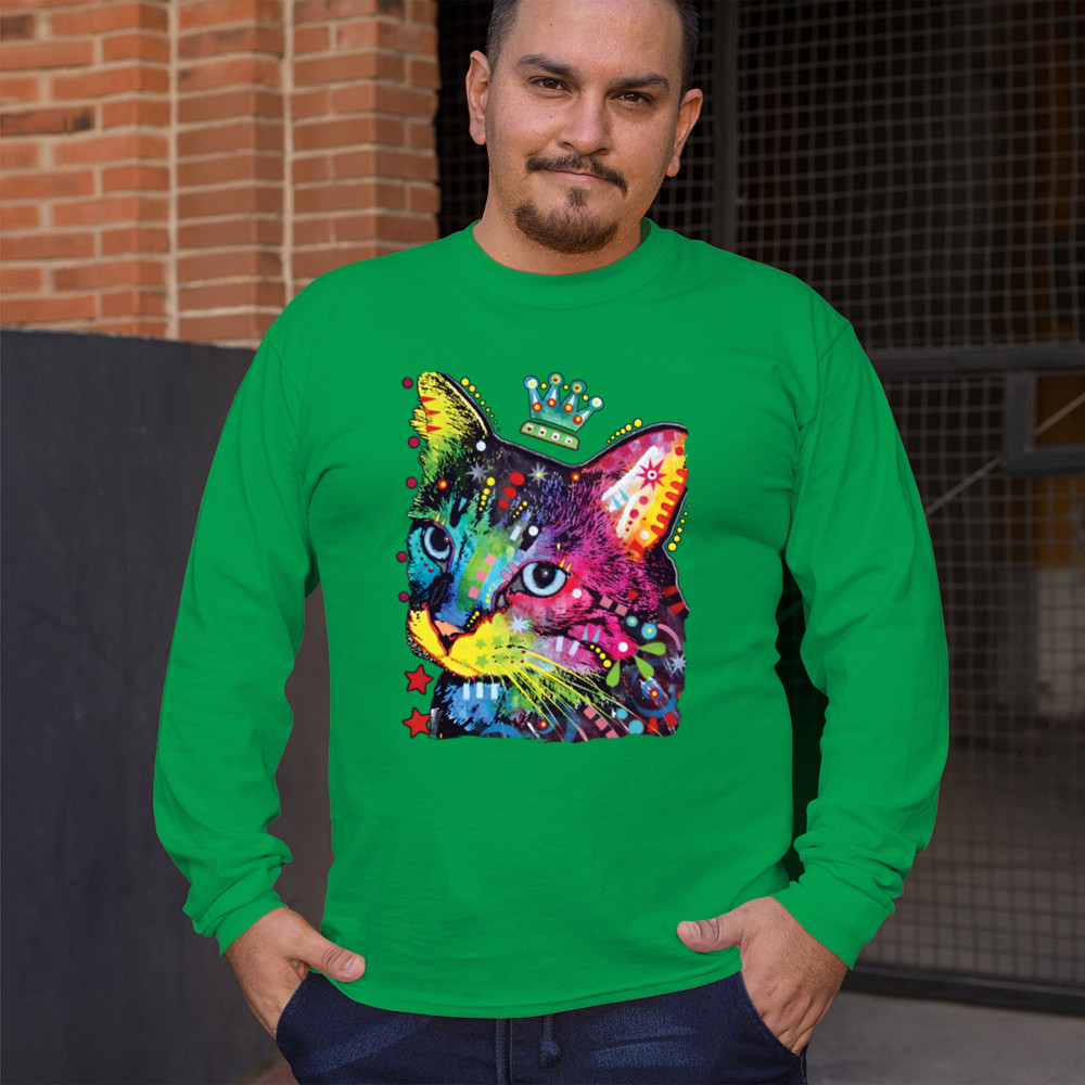 CUTE THINKING CROWNED CAT long sleeve t-shirt dean russo colorful kitten green