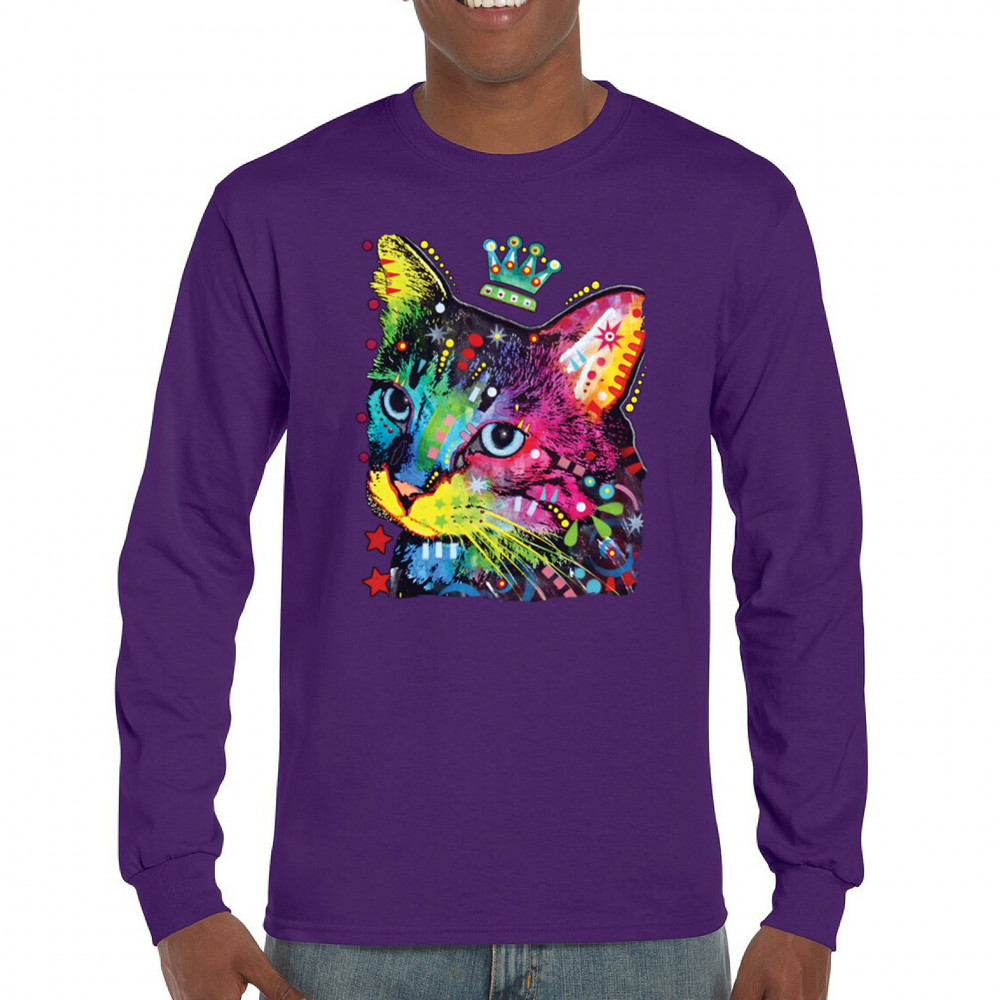 CUTE THINKING CROWNED CAT long sleeve t-shirt dean russo colorful kitten purple