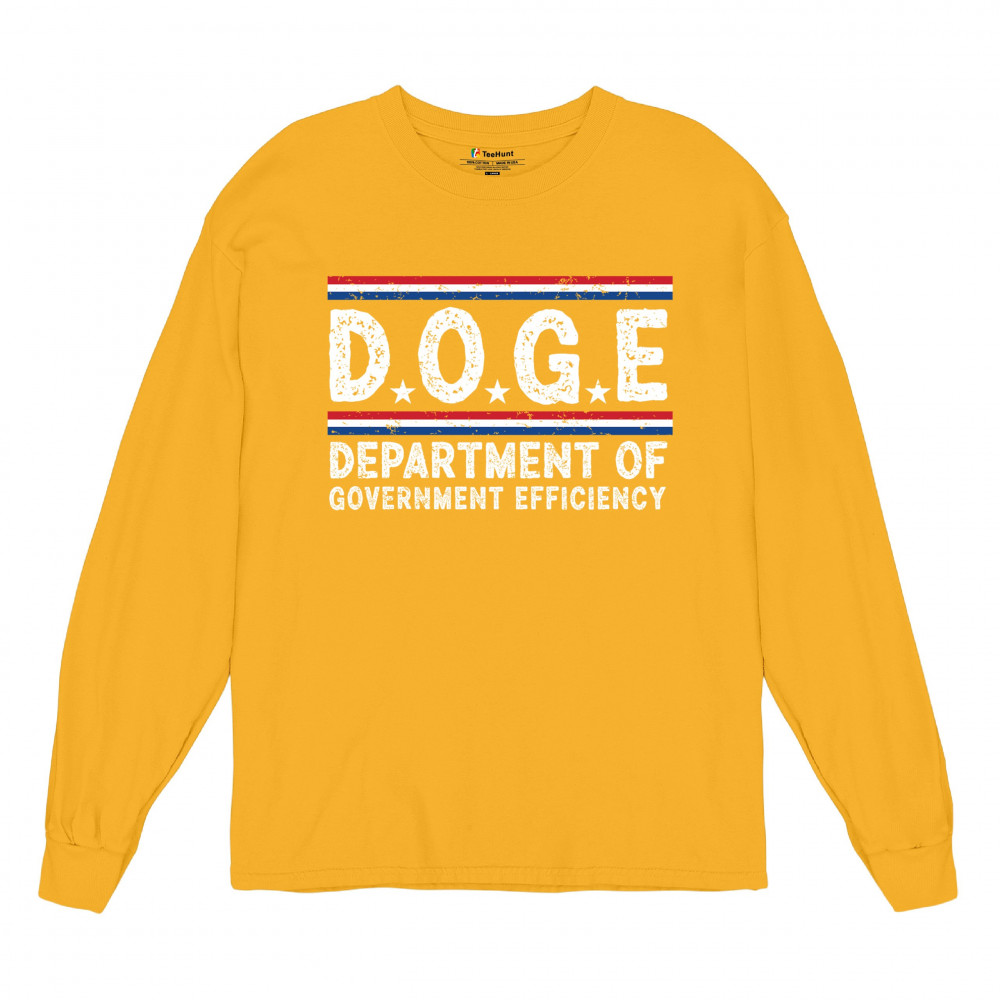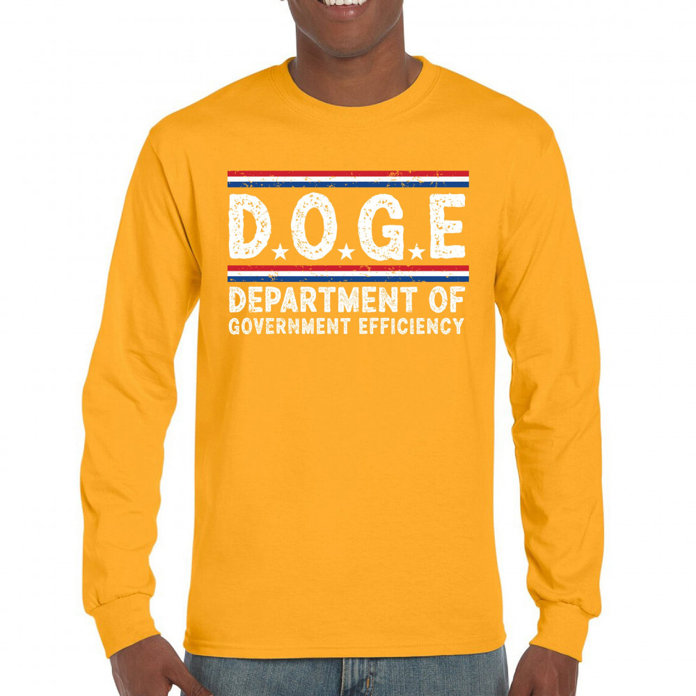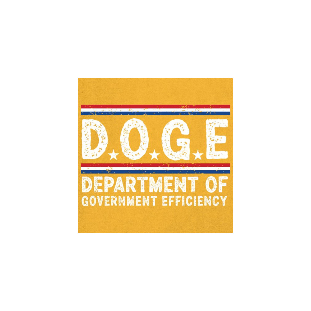 The D.O.G.E. – Department of Government Efficiency design features distressed bold text, stars, and stripes in patriotic red, white, and blue. Combining political parody with classic Americana flair, it’s perfect for conservatives, libertarians, and anyone critical of big government. Great for protests, events, or just everyday bold statements.
