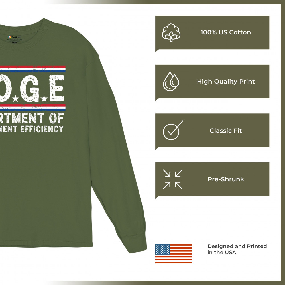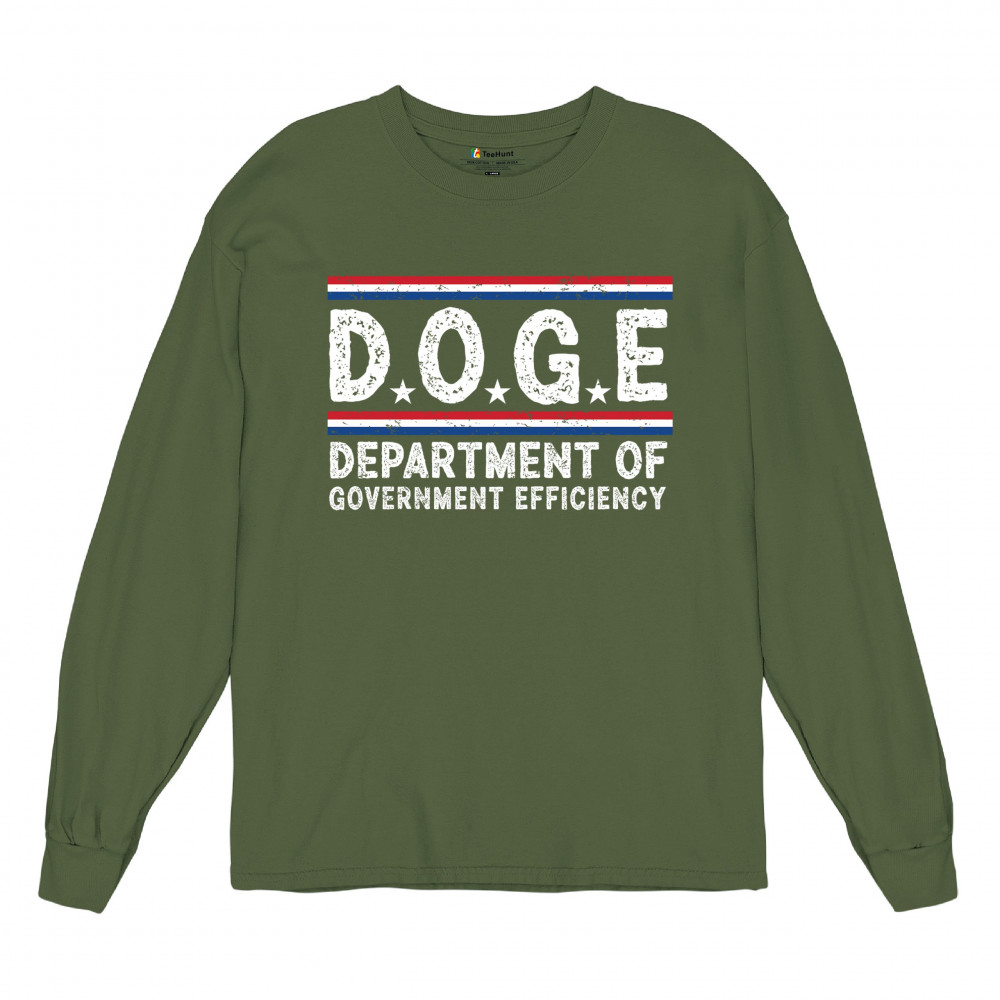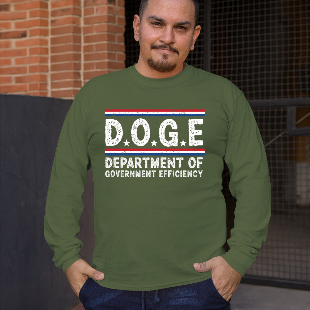 Bold D.O.G.E. parody design with stars, stripes, and vintage patriotic flair. Perfect for libertarians, protests, or political statement wear.