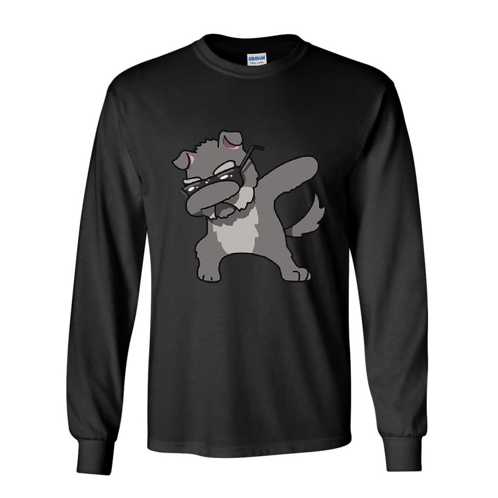 DABBING DOG in glasses long sleeve t-shirt doggie dab pet lovers pup puppy tee black
