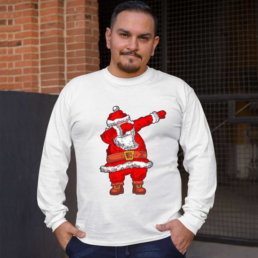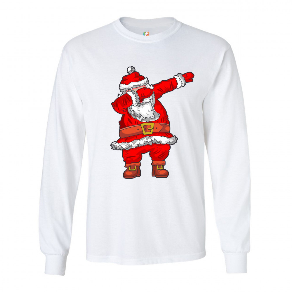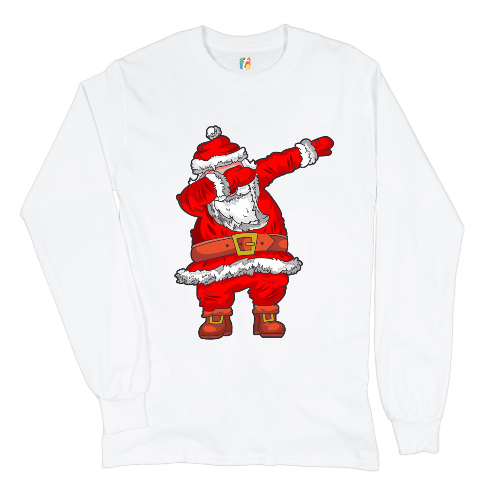 DABBING SANTA CLAUS long sleeve t-shirt merry christmas funny dab dance x-mas white