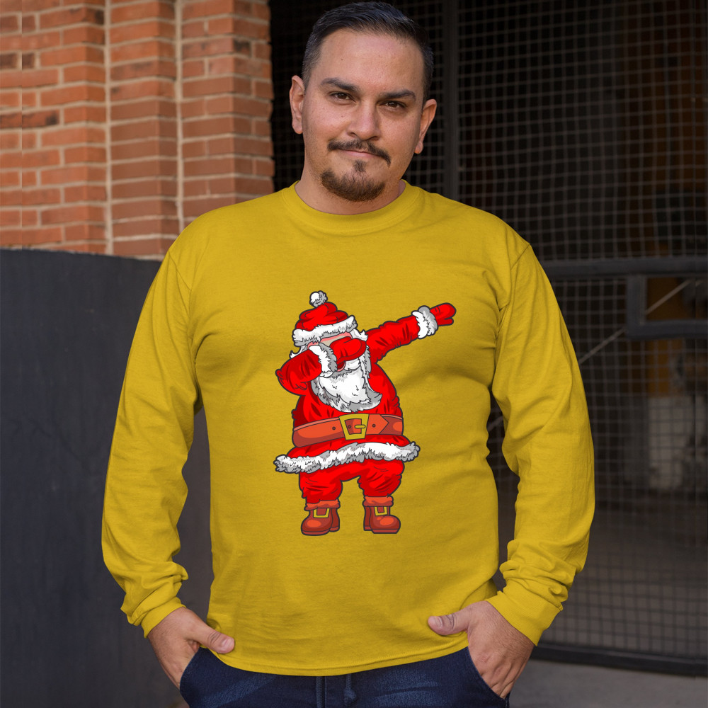 DABBING SANTA CLAUS long sleeve t-shirt merry christmas funny dab dance x-mas yellow